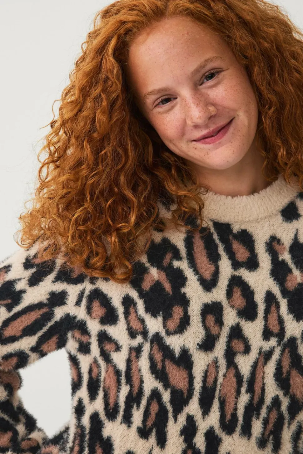 • Fintstrikket, blød trøje med rund, ribbet halsudskæring