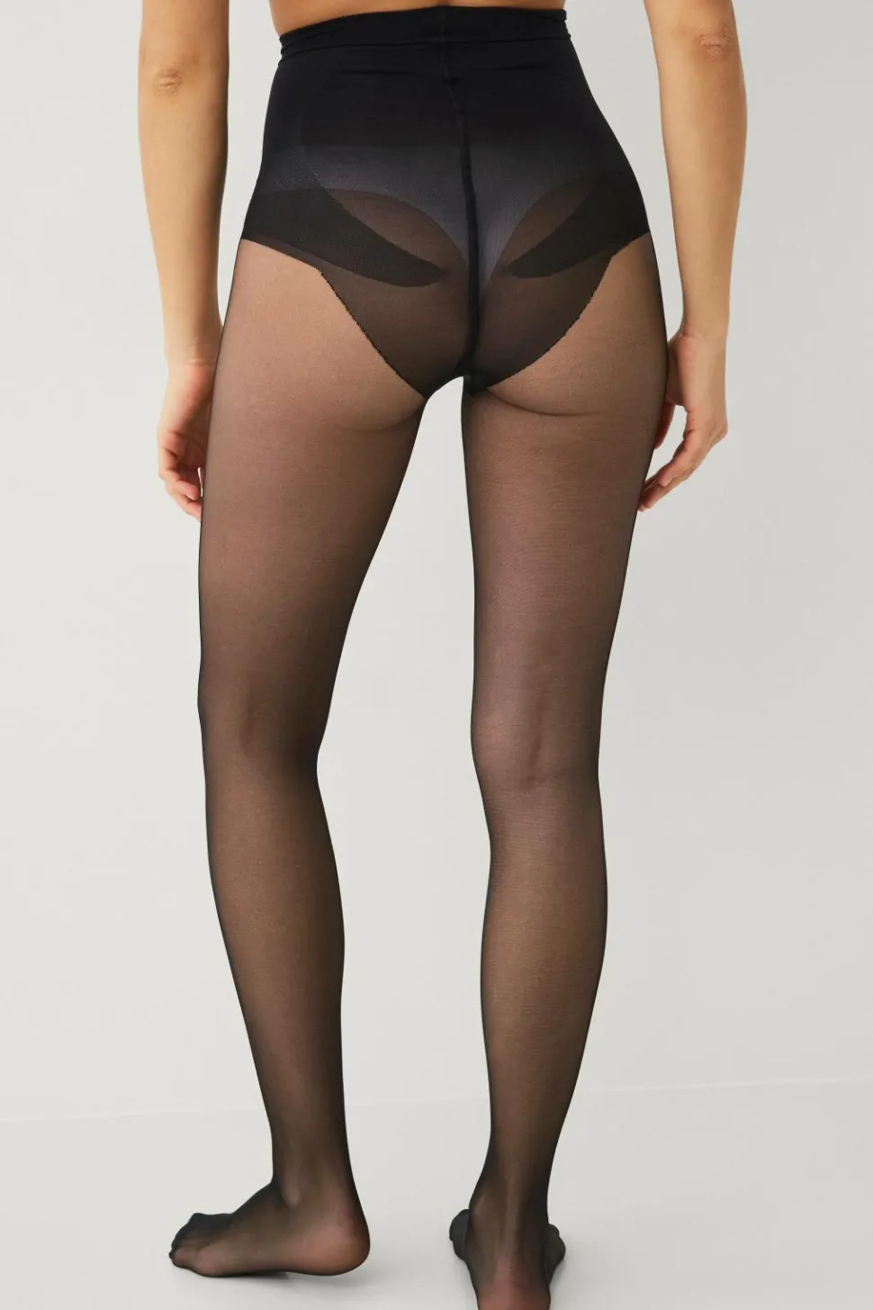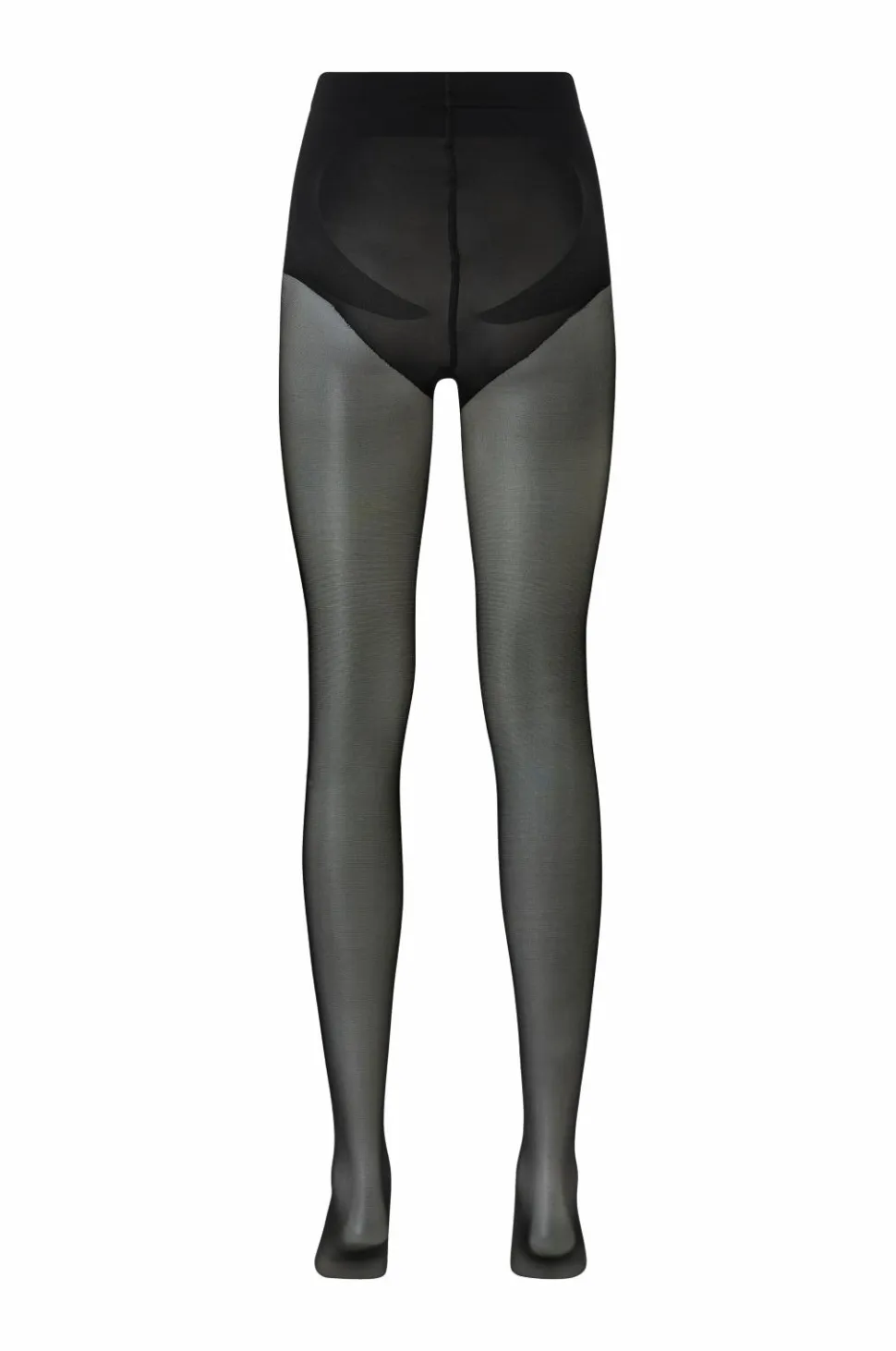 • Strømpebukser, der former sig og holder på hele for- og bagsiden af trusserne