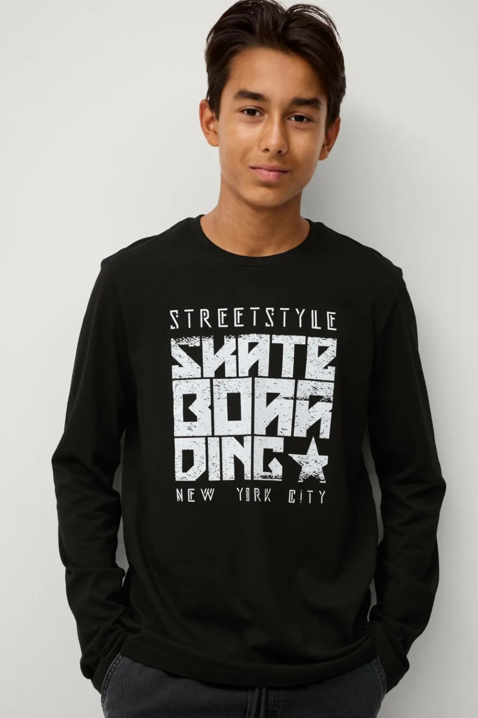 • Langærmet t-shirt i bomuld