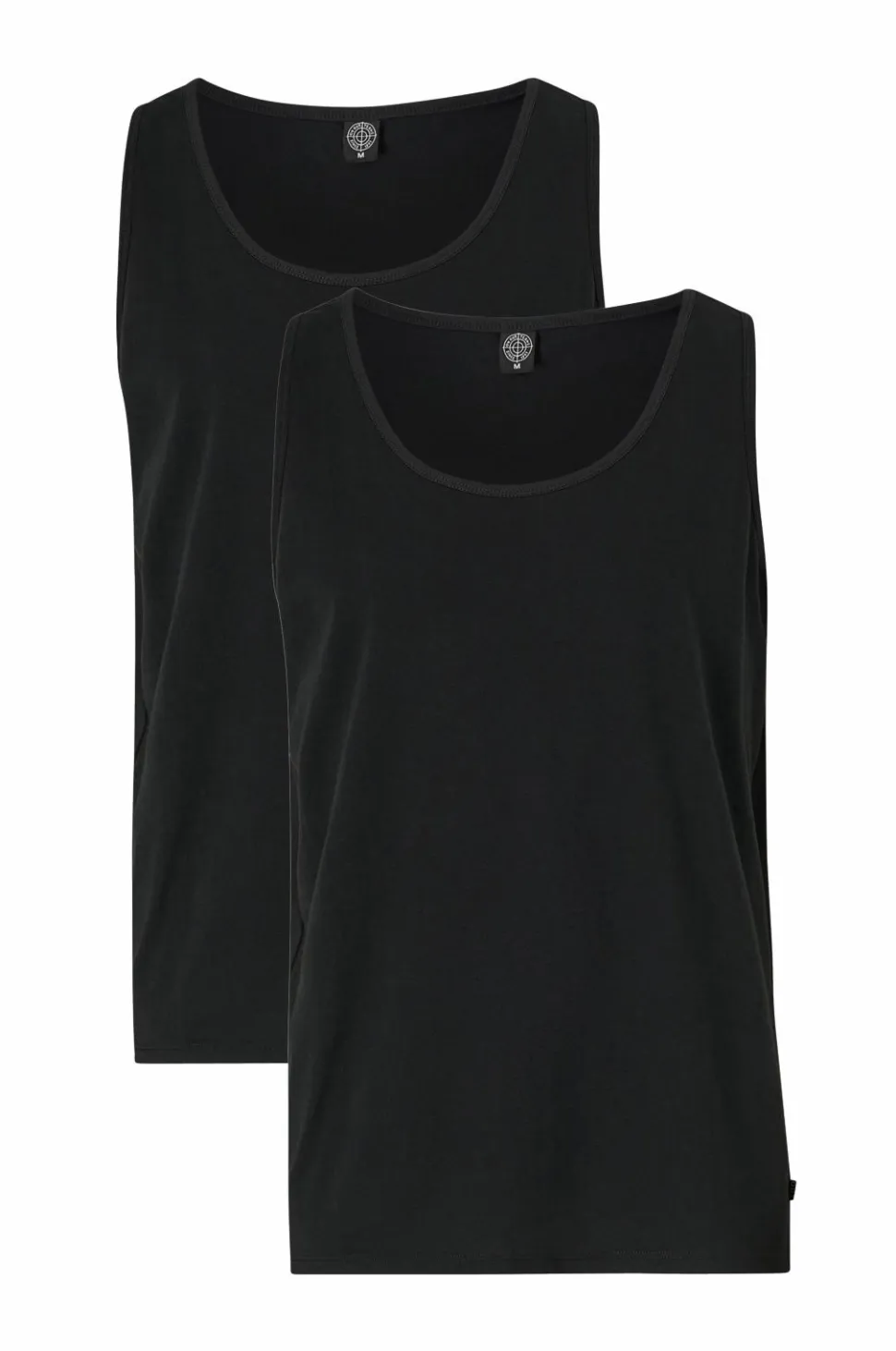 Tanktop i 2-pak fra On Our Terms i blød jersey af bomuld. To ensfarvede med rund hals. Længde ca. 71 cm i str. M.