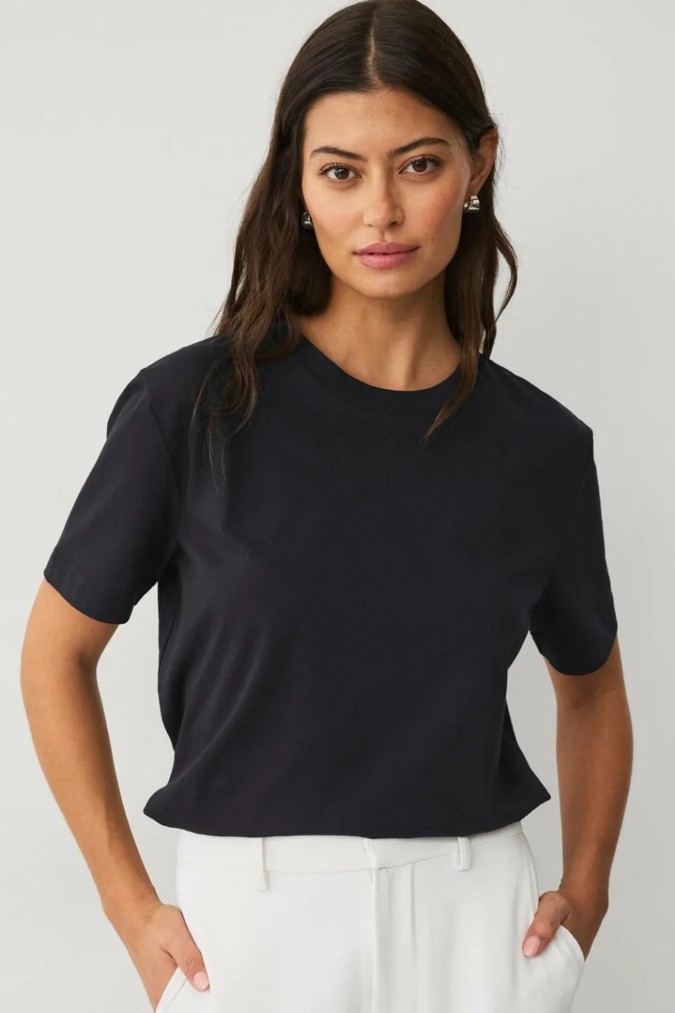 • Rund hals med ribkant