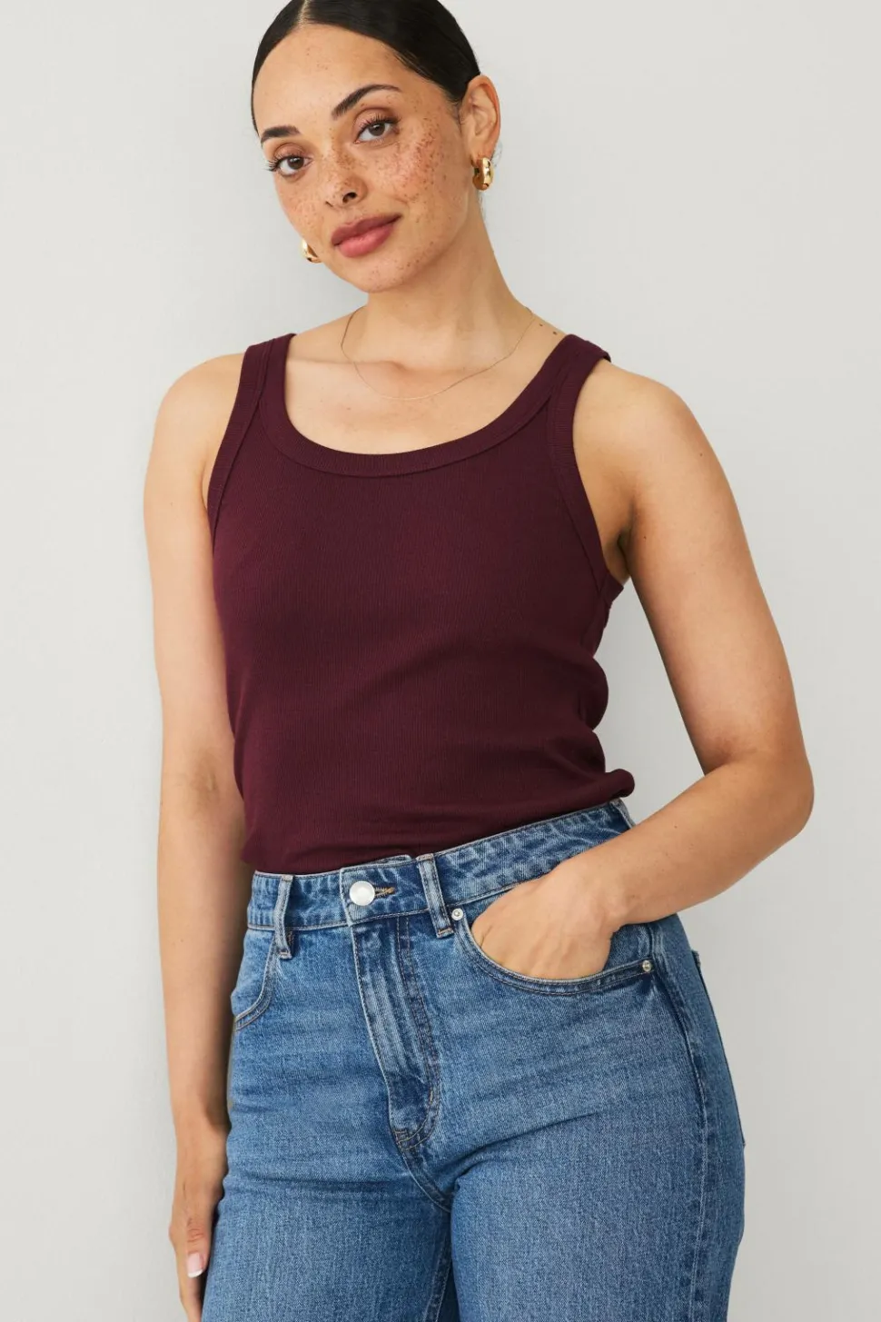 • Tanktop i ribbet, blødt materiale