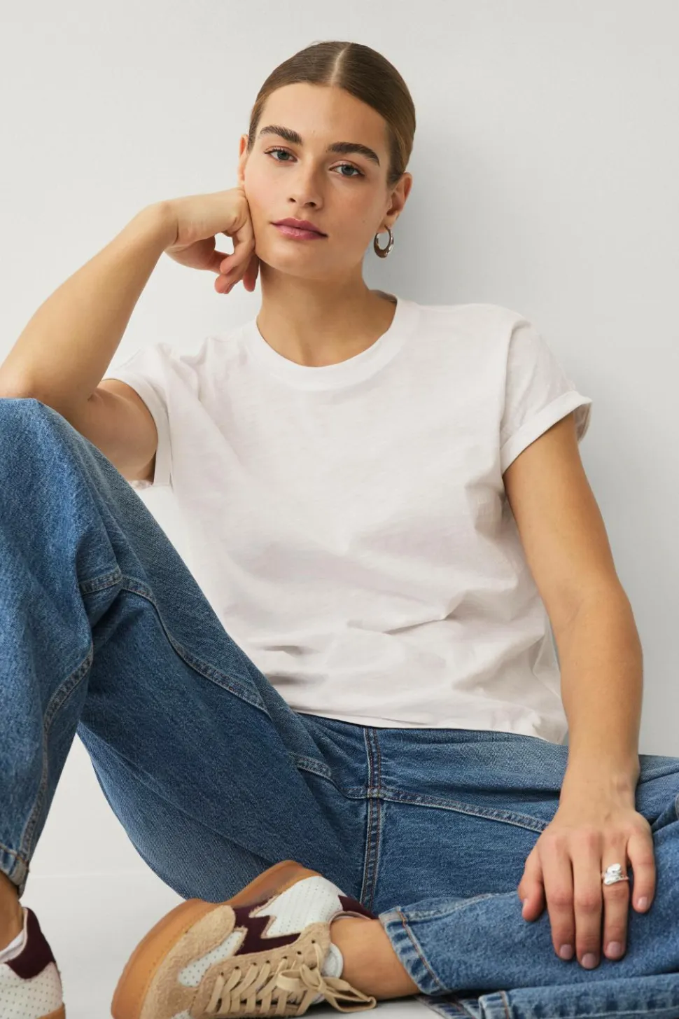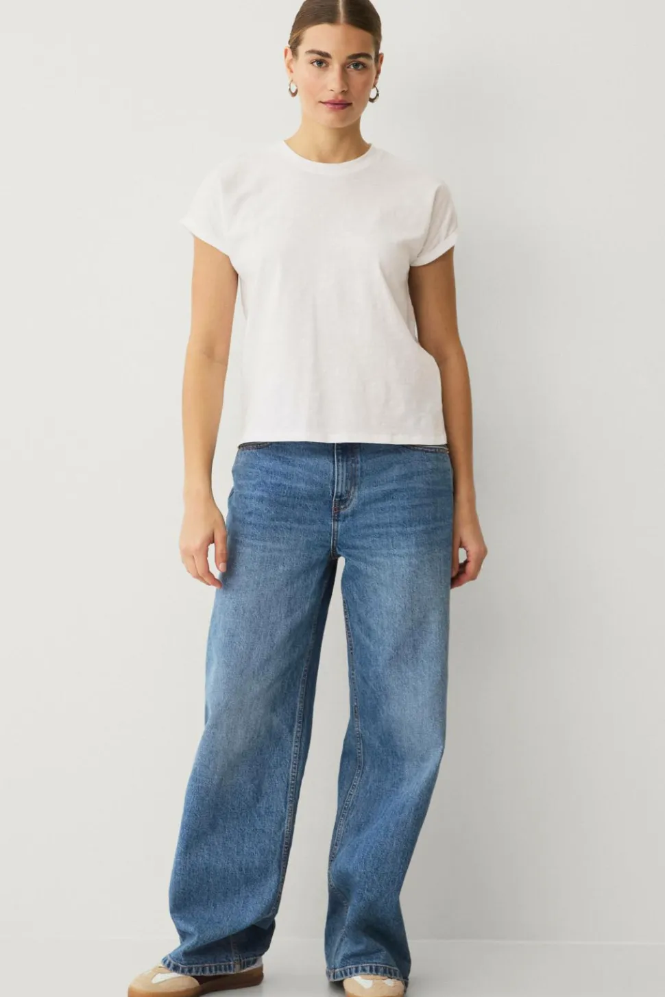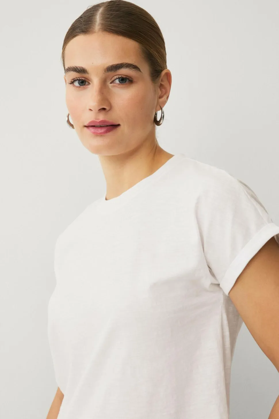 • Nedsænket skulder med kort ærme og fæstet oprullet