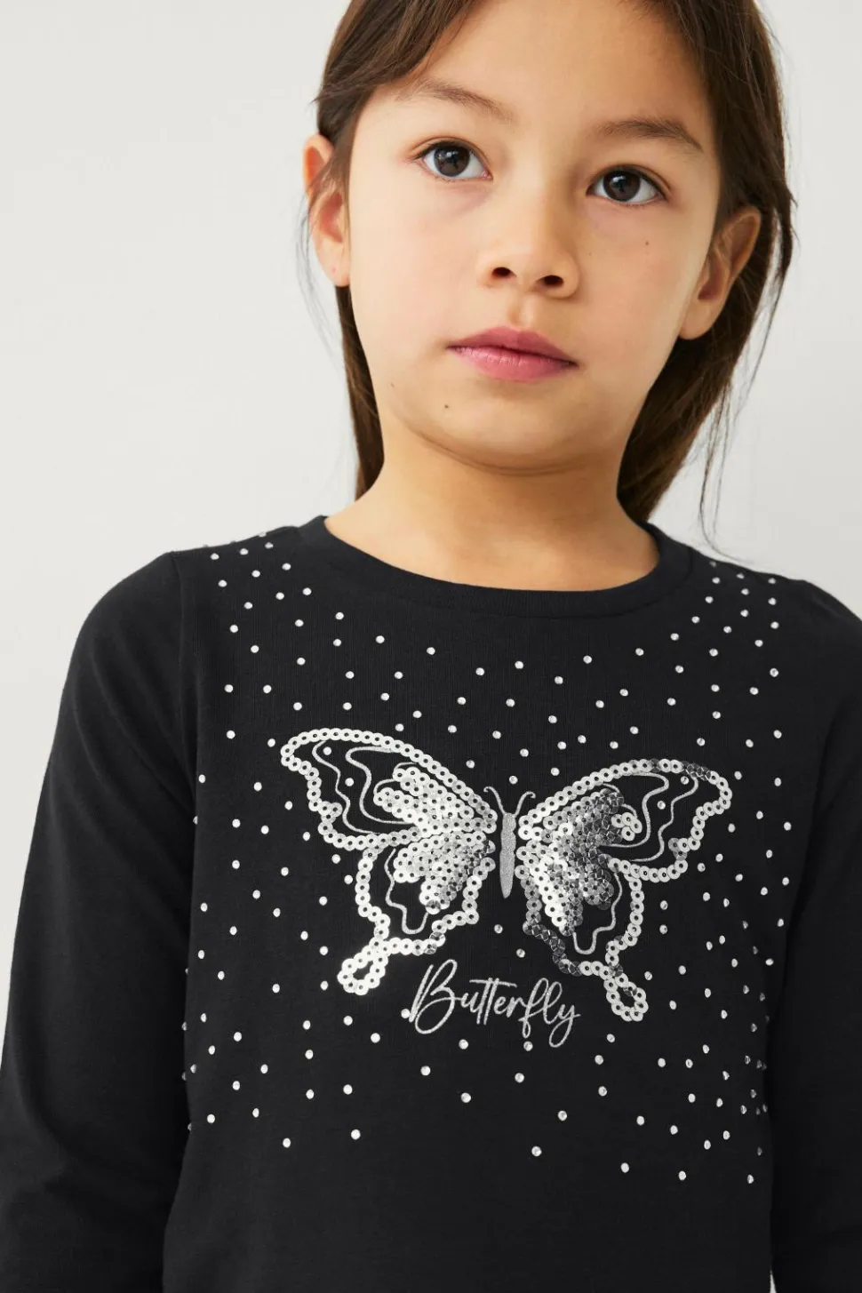 • Funklende tryk foran med glitrende sten og pailletter