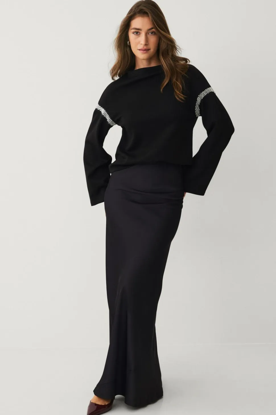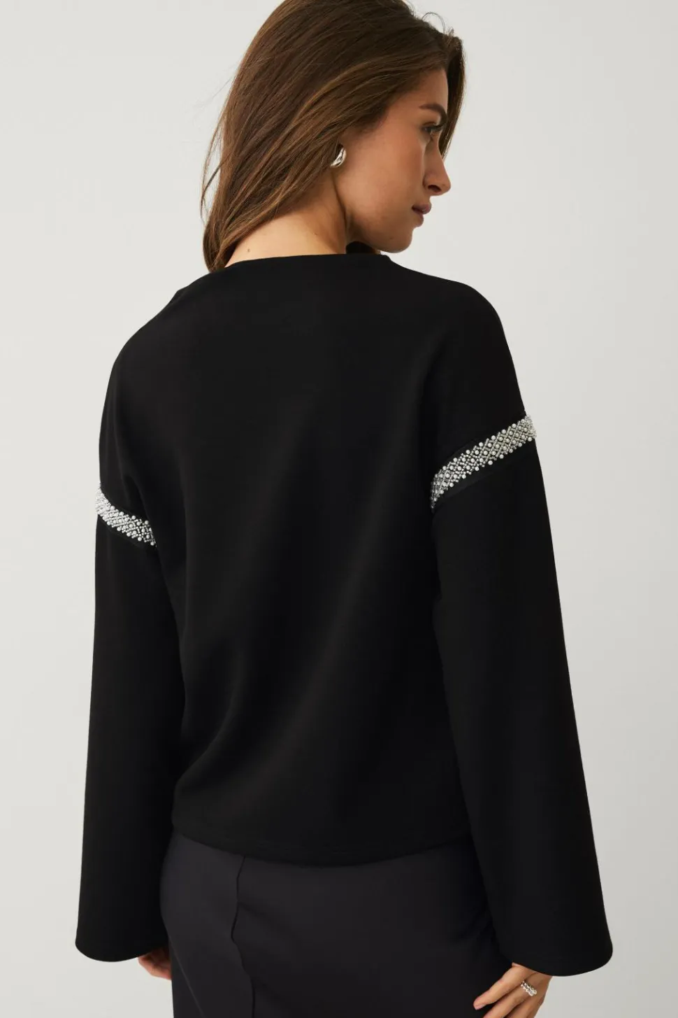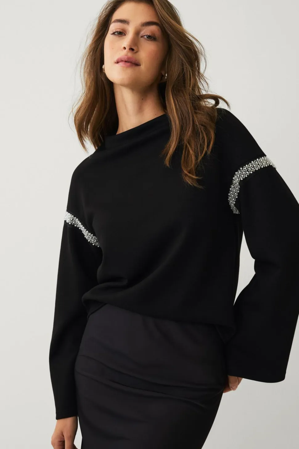 • Lange, brede ærmer med dekorative perledetaljer omkring skuldrene