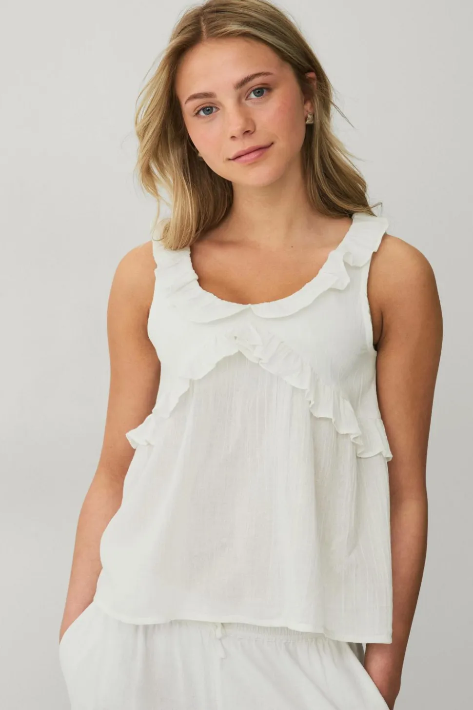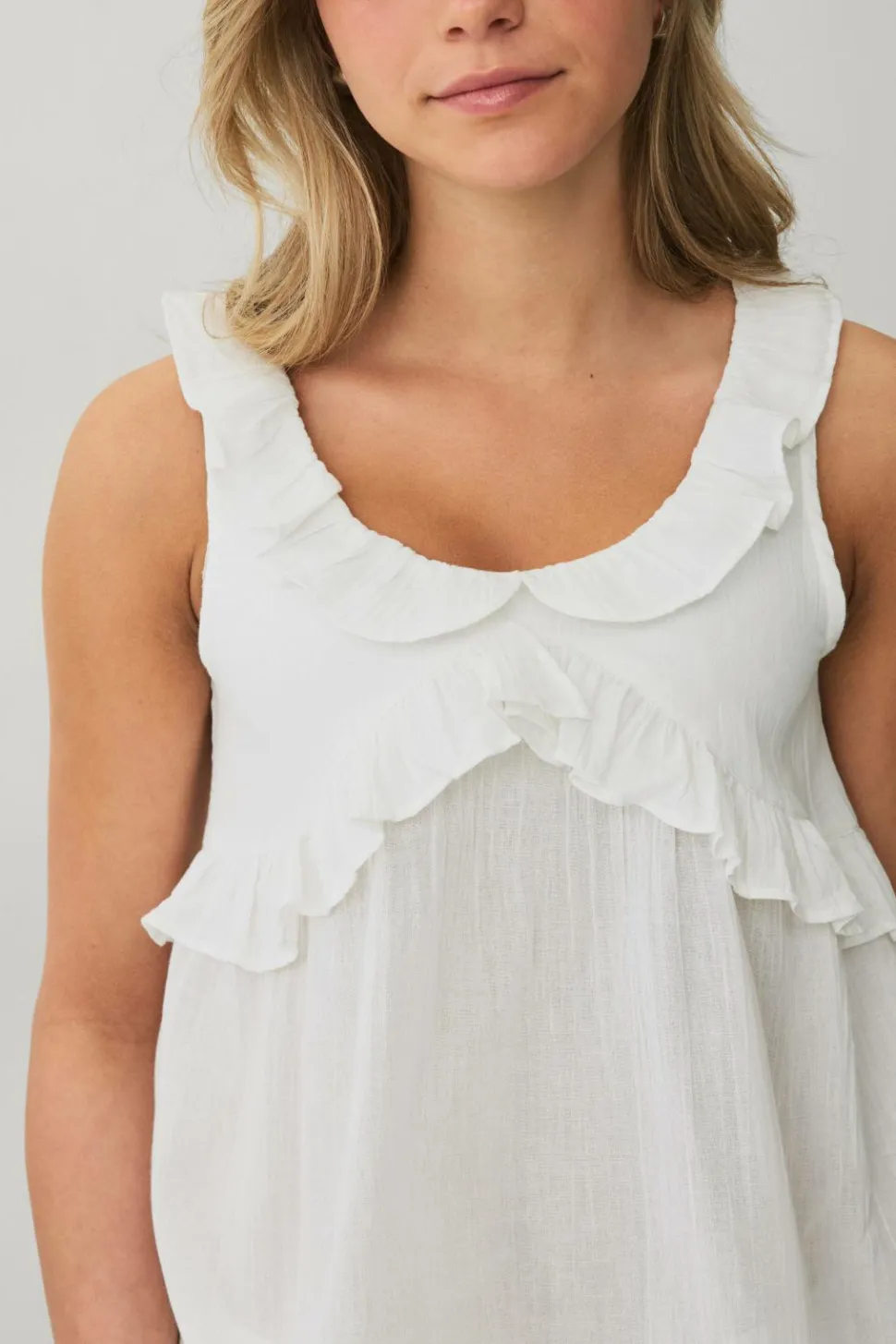 • Ærmeløs top i bomuld med rund hals