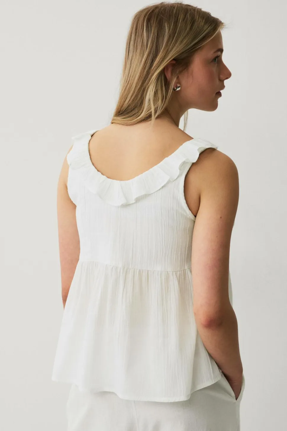 • Volanter rundt om halsudskæringen og ved fronten