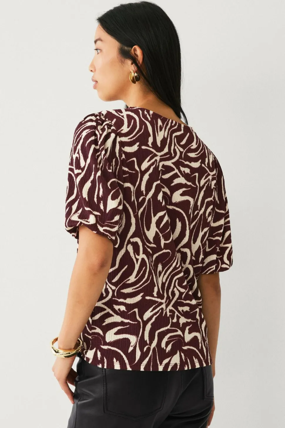 • Top i tynd, blød polyesterblanding med struktur og mønster