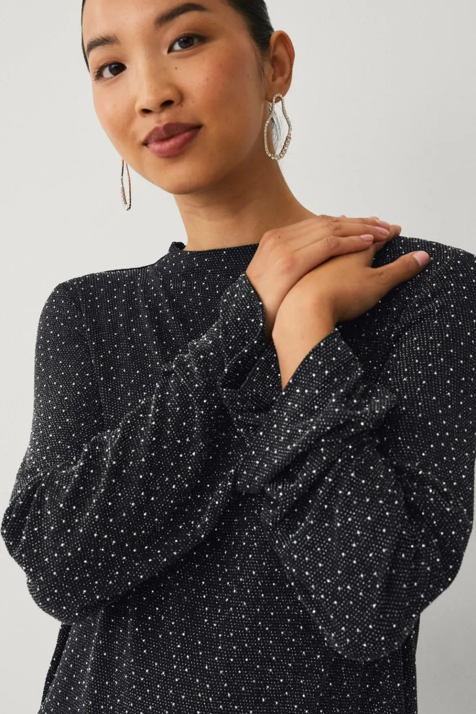 • Tynd, glitrende top med rhinstene overalt