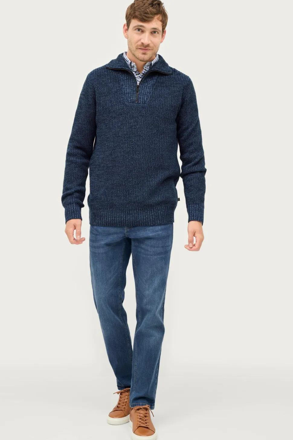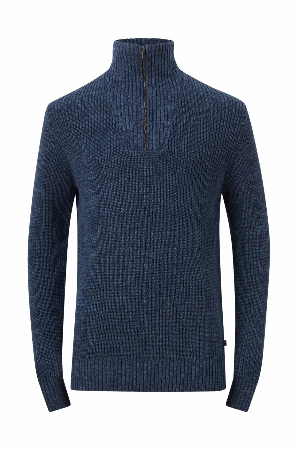 • Ribstrikket opretstående krave med lynlås
