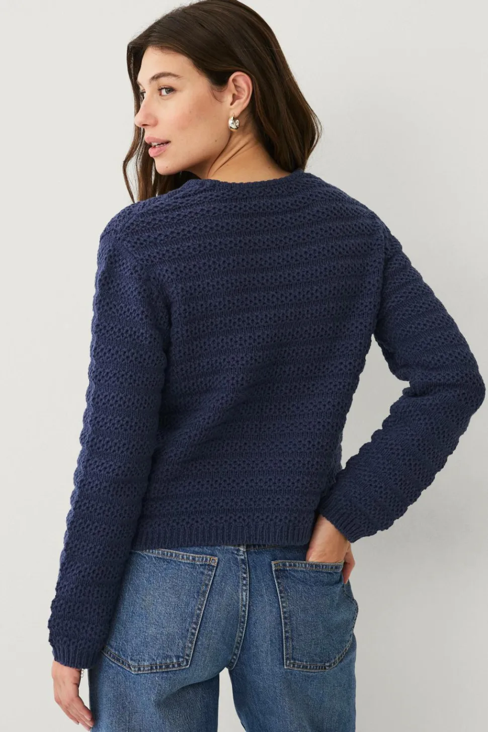 • Strukturstrikket Pullover med løststrikkede partier