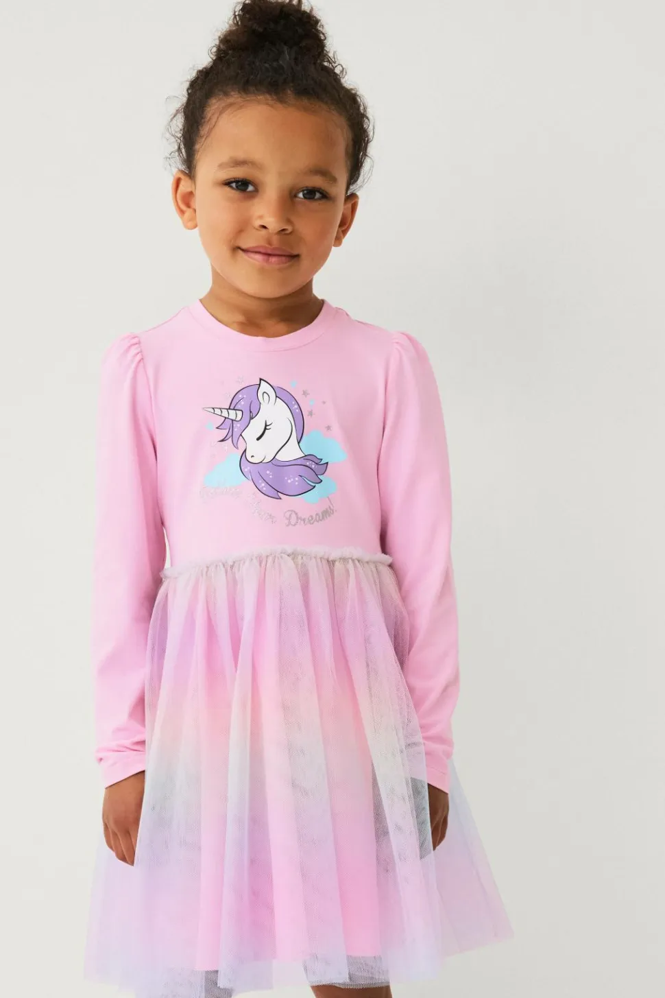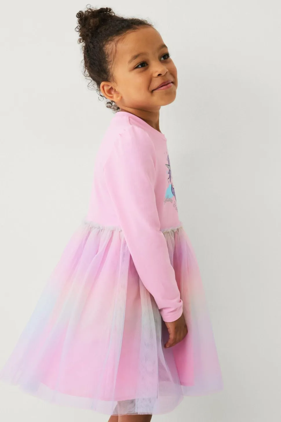 • Langærmet kjole med øvre del i elastisk jersey