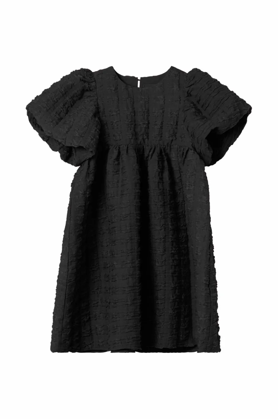 • Kjole i elastisk polyestermix med vævet, ternet strukturmønster
