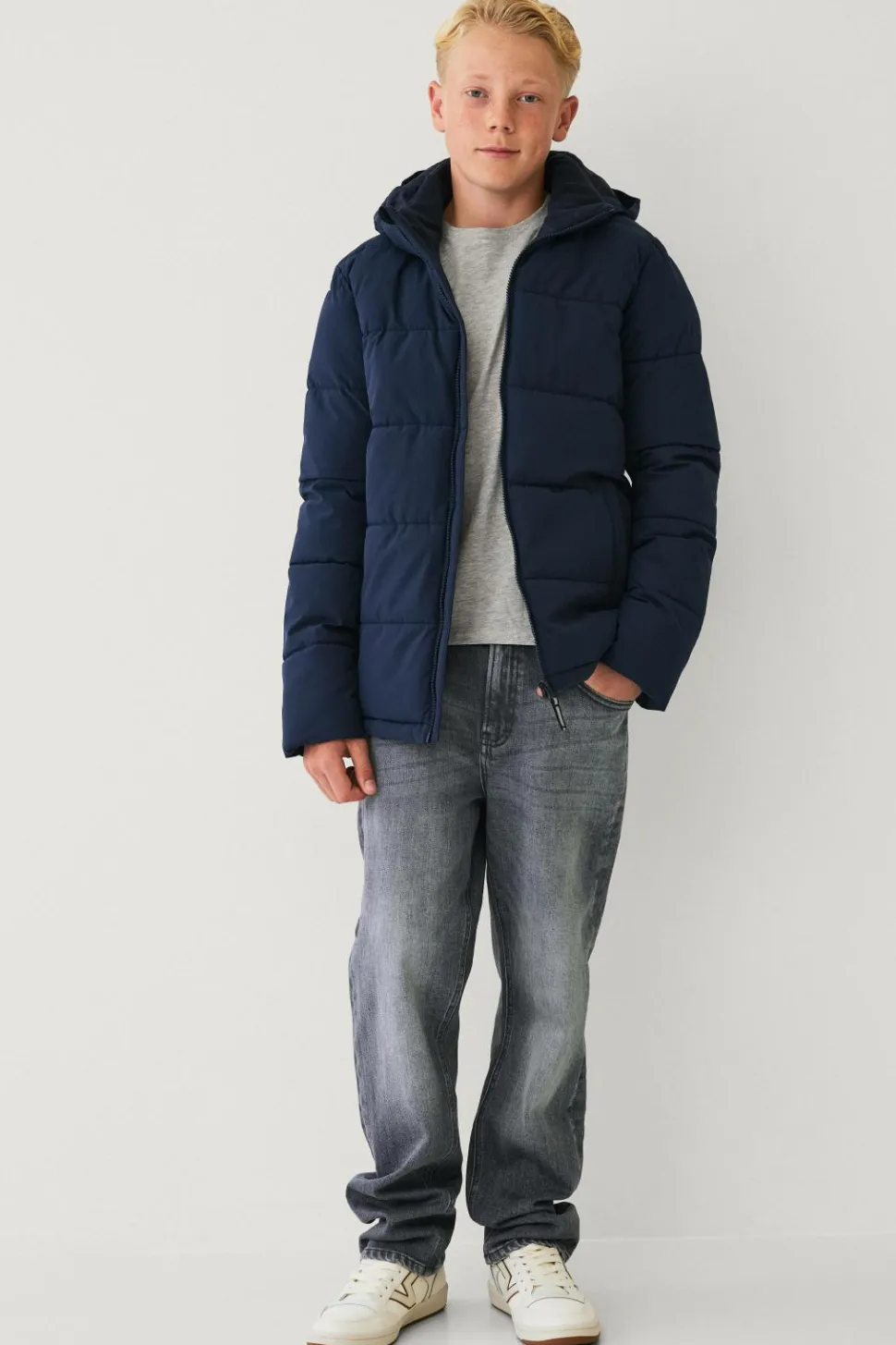 • Quiltet, varm pufferjakke med aftagelig hætte