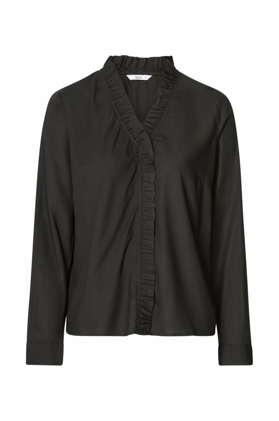 • V-formet halsudskæring med lille volant og volant hele vejen frem