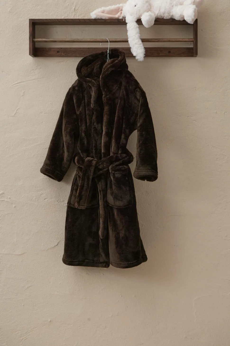 • Hyggelig badekåbe i blød, tyk fleece med hætte