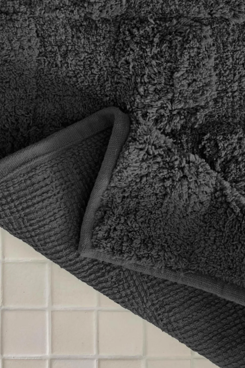 • Blødt badeværelsestæppe med tuftede firkanter i forskellige højder