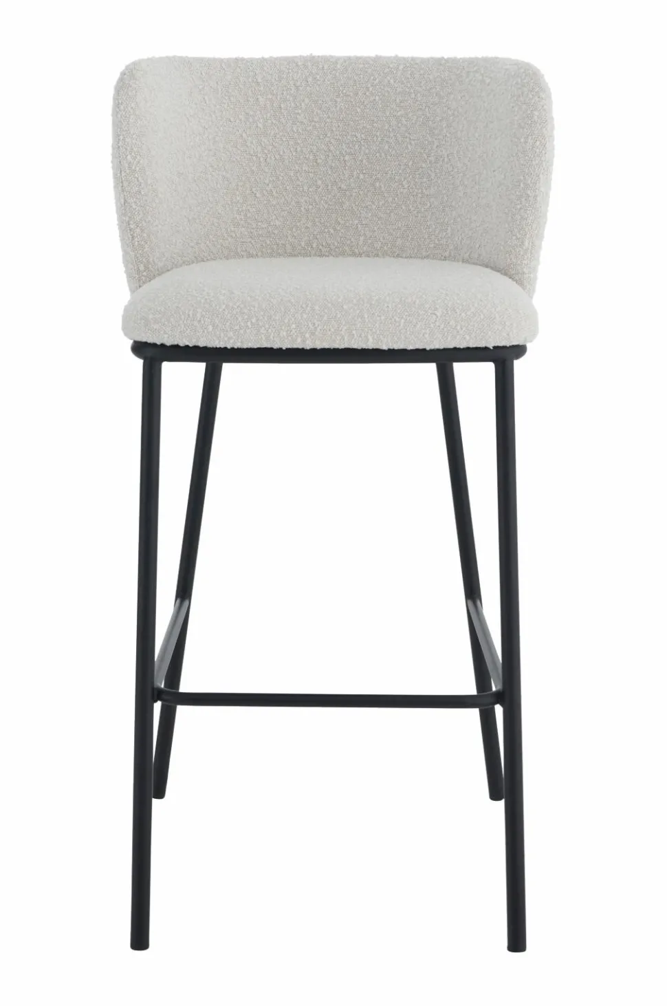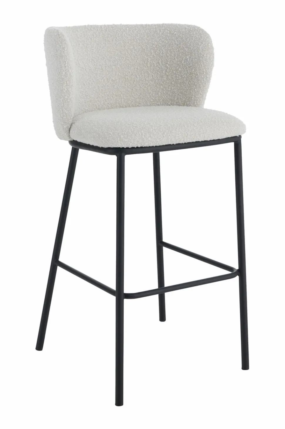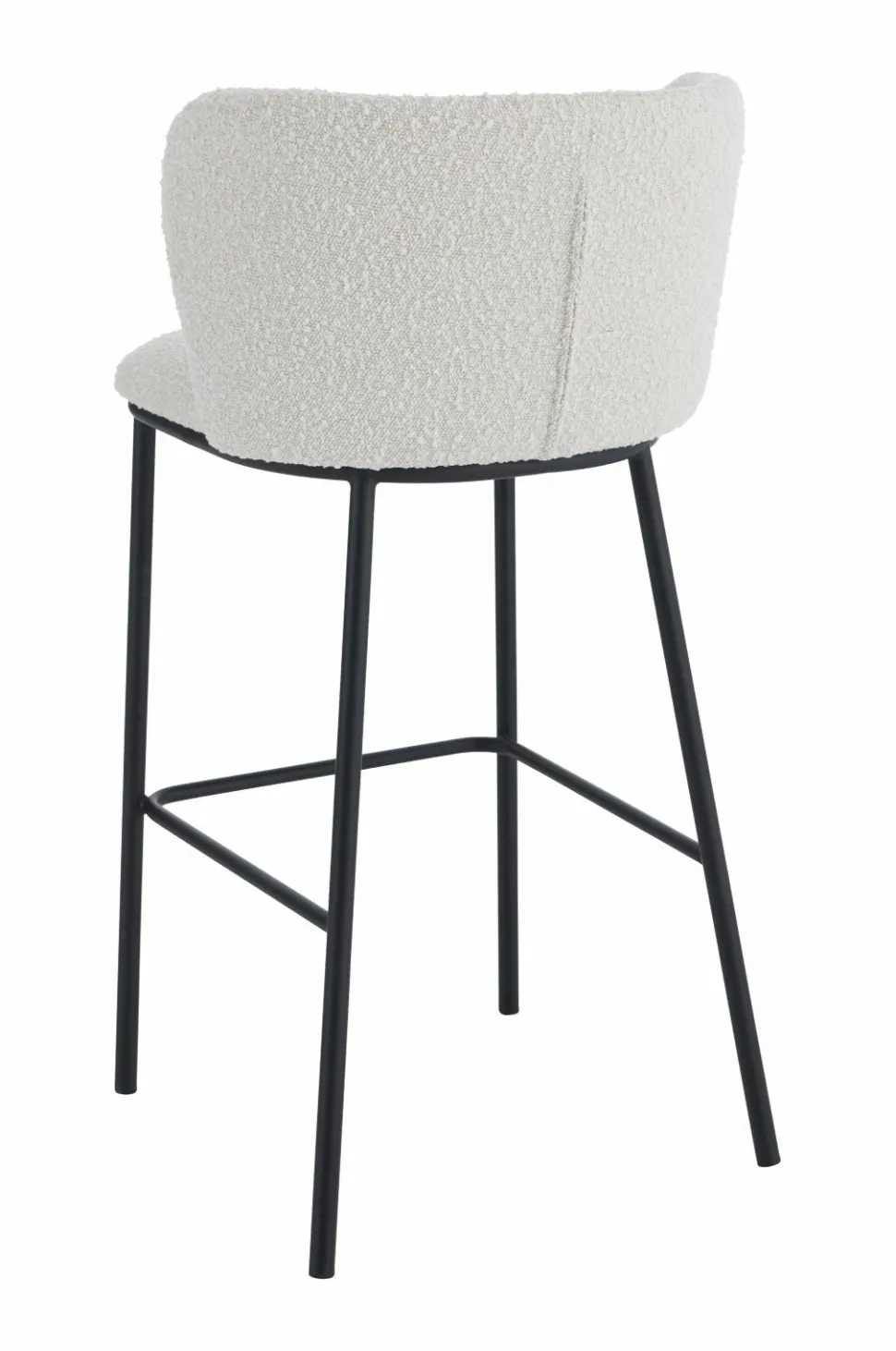 Barstol i skandinavisk, stilren design med skålformet ryglæn. Betræk i bouclé med skumfyld. Ben af metal. Ryglæn højde 27 cm. Maks. belastning 150 kg. Sælges enkeltvis.