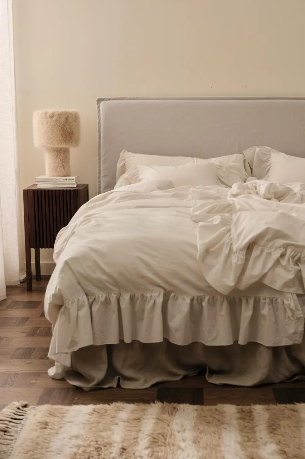 • Et betræk, som du trækker over dit hovedgærde. Betrækket har en løs pasform, afhængigt af dybden på dit hovedgærde, hvilket giver sengen et afslappet look.
