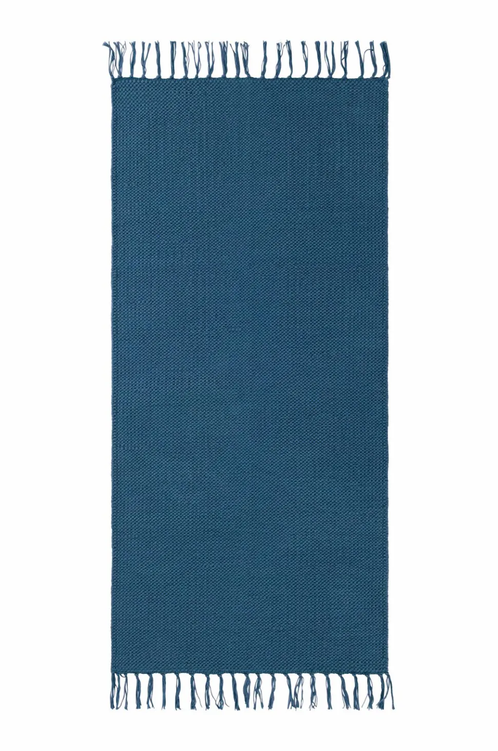 Glatvævet bomuldstæppe med farvede frynser. Højde 0,5 cm.