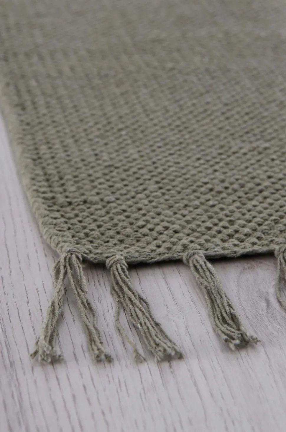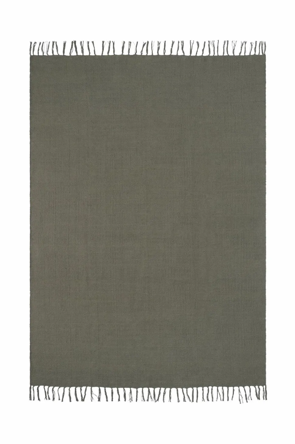 Glatvævet bomuldstæppe med farvede frynser. Højde 0,5 cm.