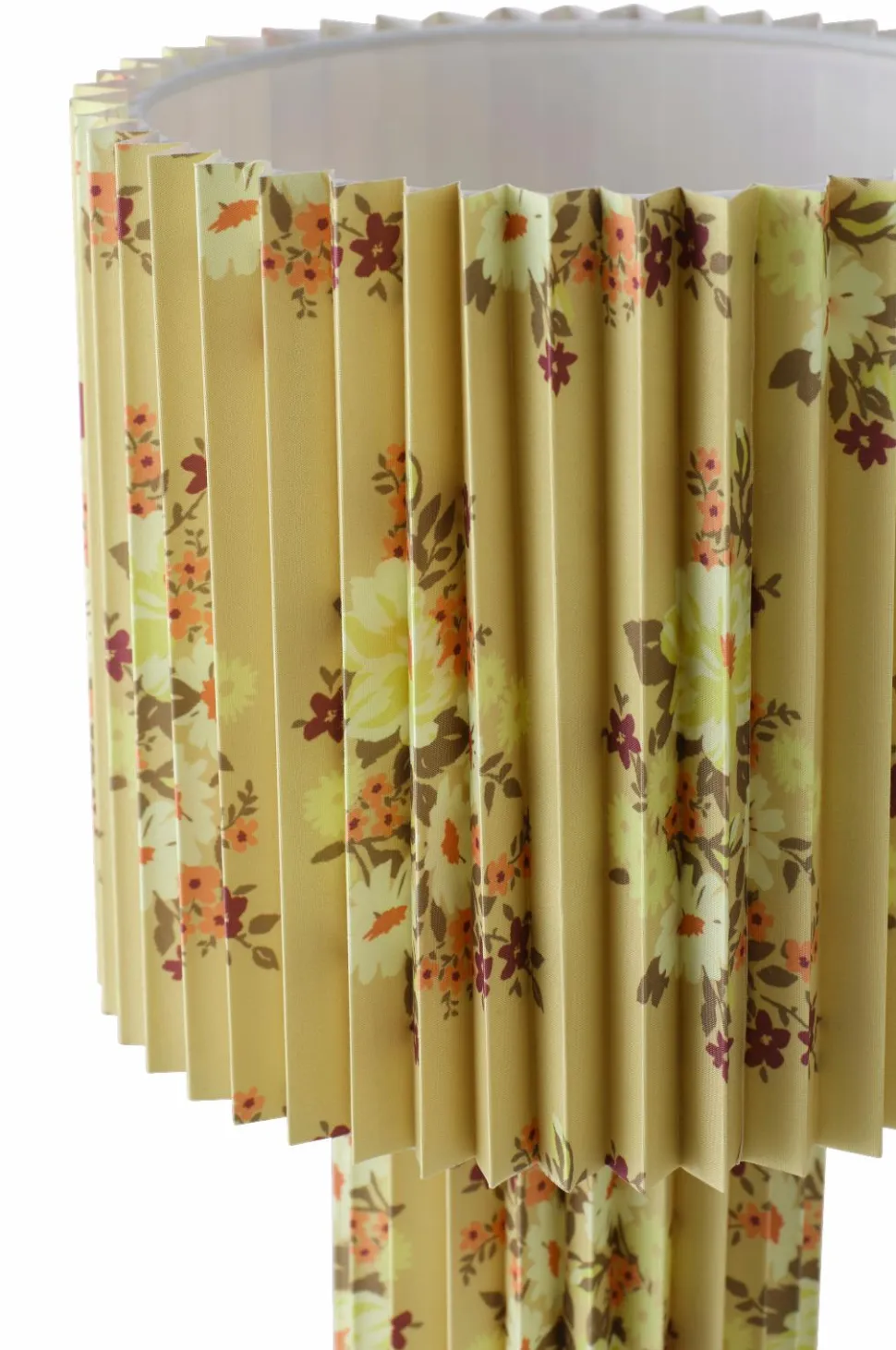• Stofbetrukket, plisseret bordlampe med printet blomstermønster