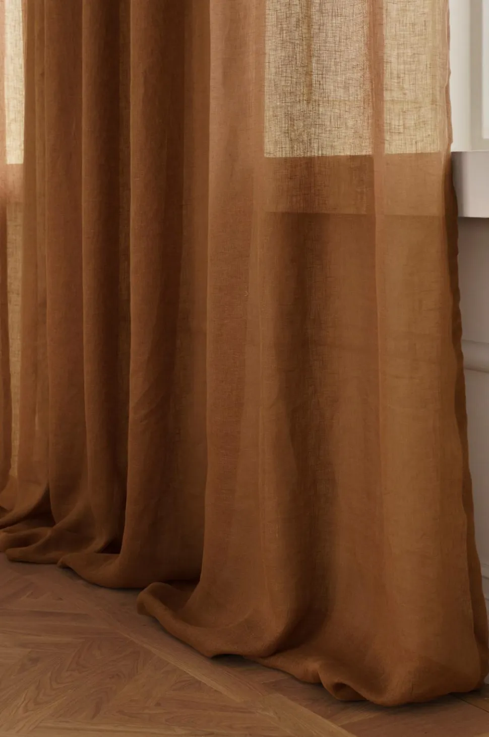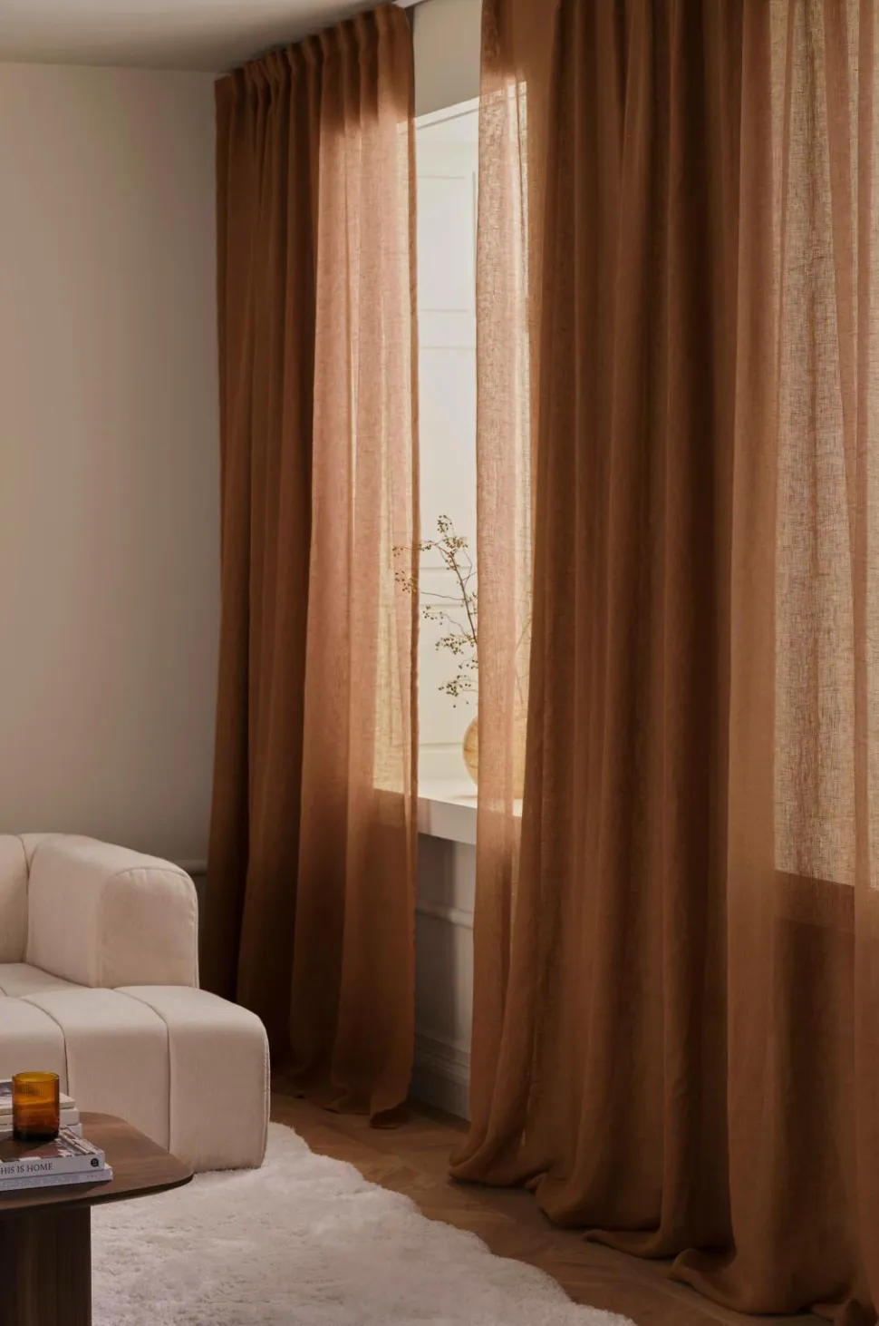 CLEO er et delikat og luftigt gardin i ægte hør med en lidt mere sparsom vævning. Hør er en eksklusiv kvalitet med en smuk struktur. Stoffet i CLEO falder let, og lyset filtreres ind i rummet. Hvis du vil skærme for solens stråler eller begrænse udsynet, kan du trække gardinet for og stadig lade lyset komme ind. Hørgardiner er lige så smukke, når de er glatspændte, som når de er let krøllede. CLEO-gardinet er lavet af europæisk hørcertificeret hør. Længderne har påsyet, gennemsigtigt multifunktionelt bånd i toppen, og de kan hænges op med fingerkroge, en kanal og en skjult bøjle.
