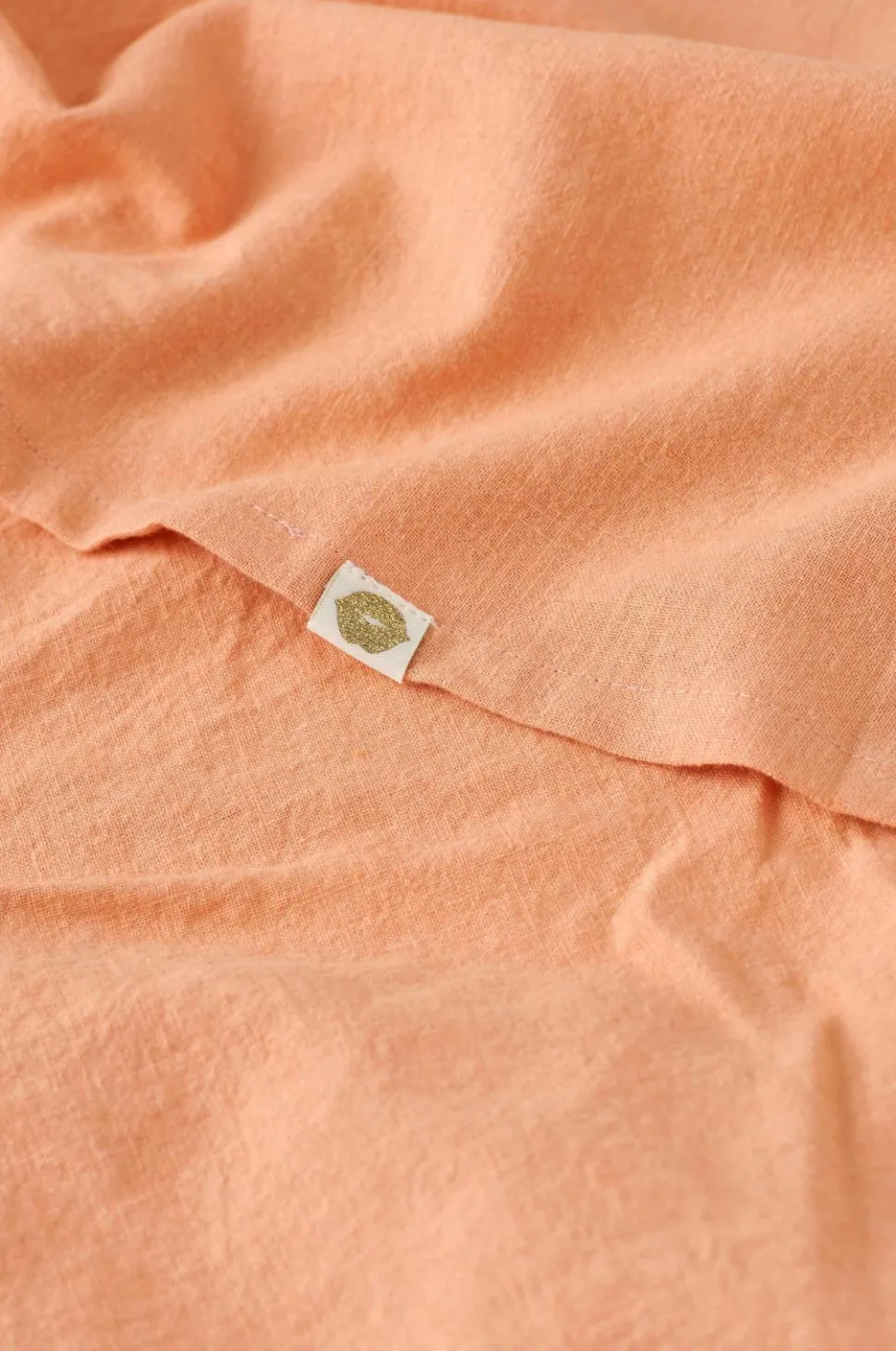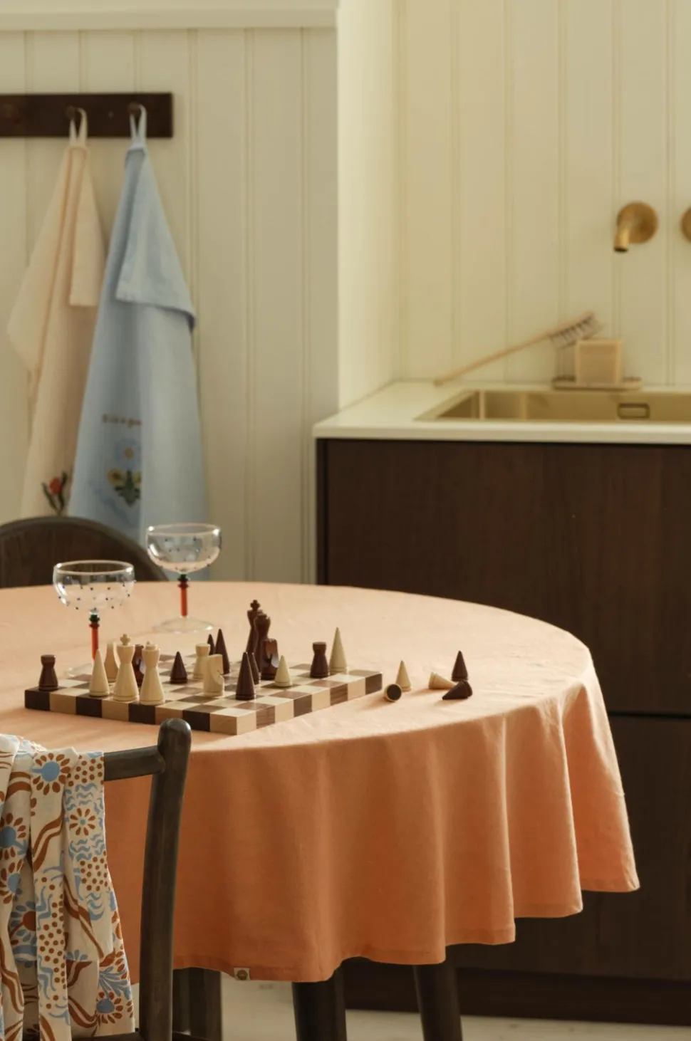 • Rund, ensfarvet dug i bomuld og hør med blød, vasket afslutning