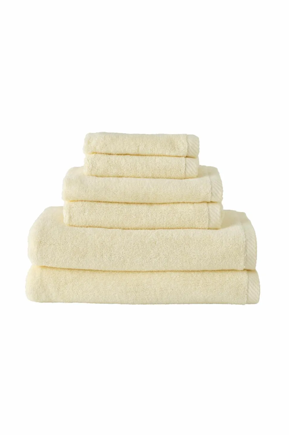 Håndklæder i blød og skøn bomuldsfrotté. Vægt 500 g/m2. Sættet indeholder 2 håndklæder 30×50 cm, 2 håndklæder 50×70 cm og 2 badehåndklæder 70×140 cm.
