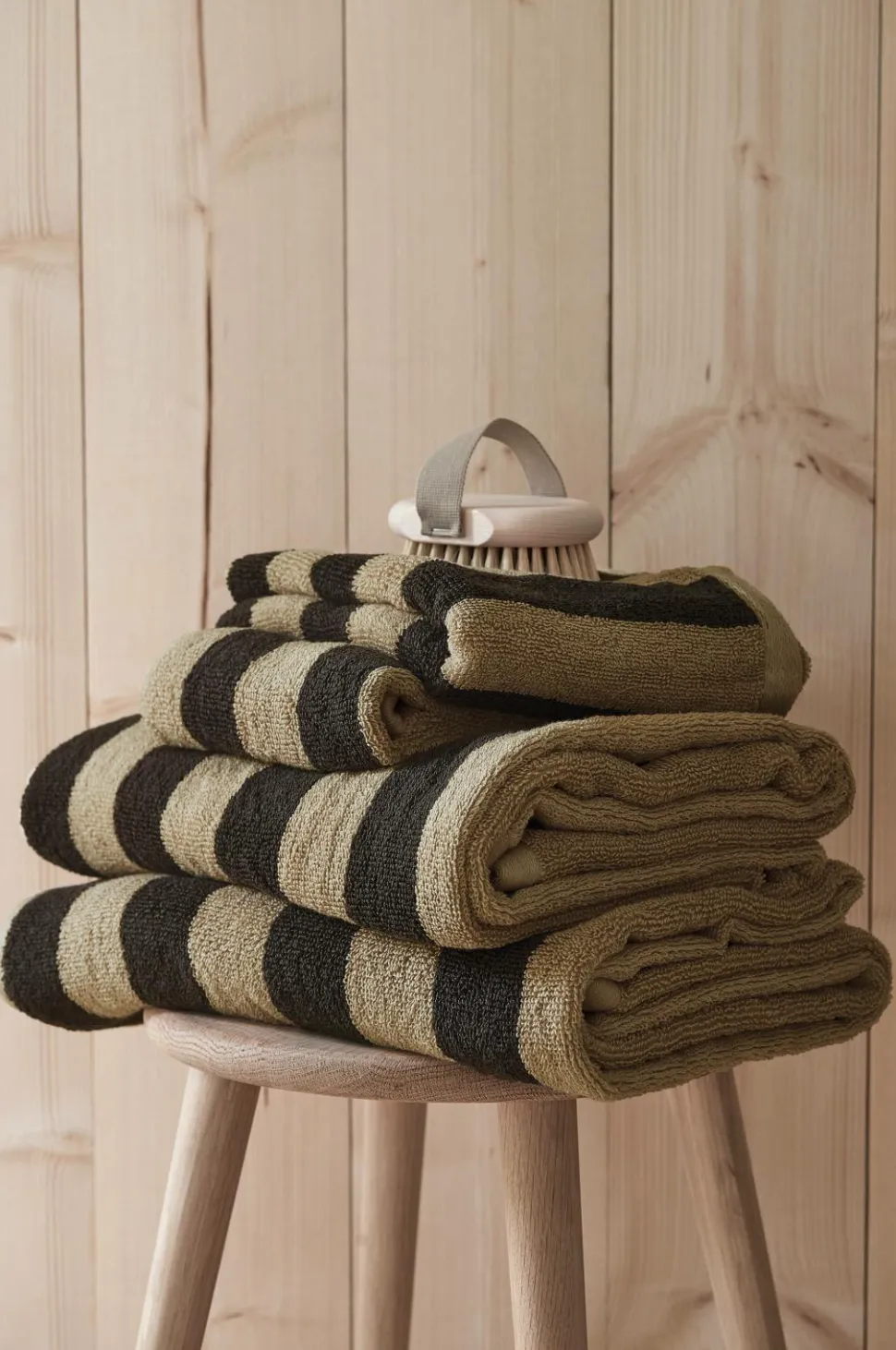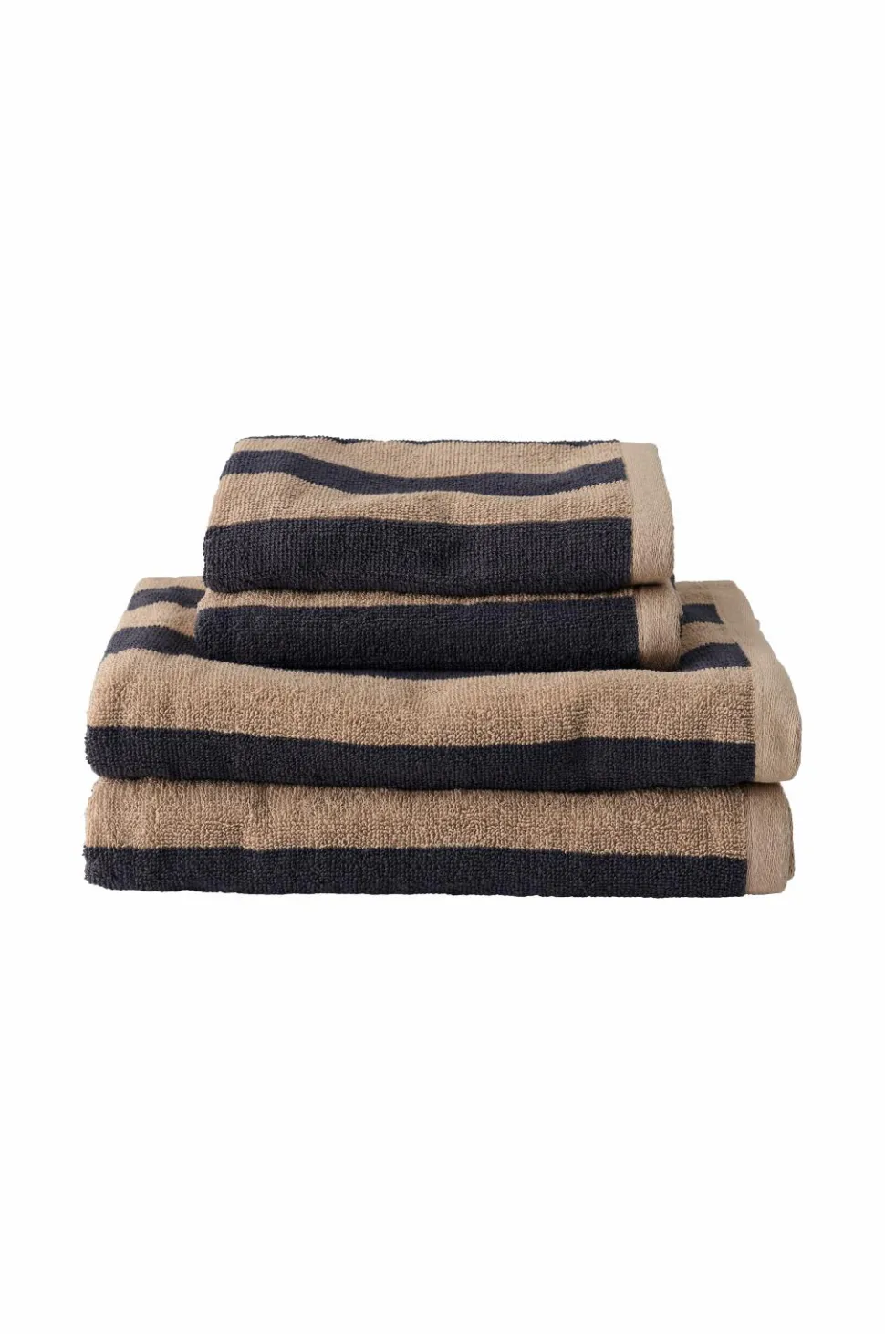 Håndklæder i blød og skøn bomuldsfrotté med garnfarvede striber. Sættet indeholder 2 håndklæder 50×70 cm og 2 badehåndklæder 70×140 cm.