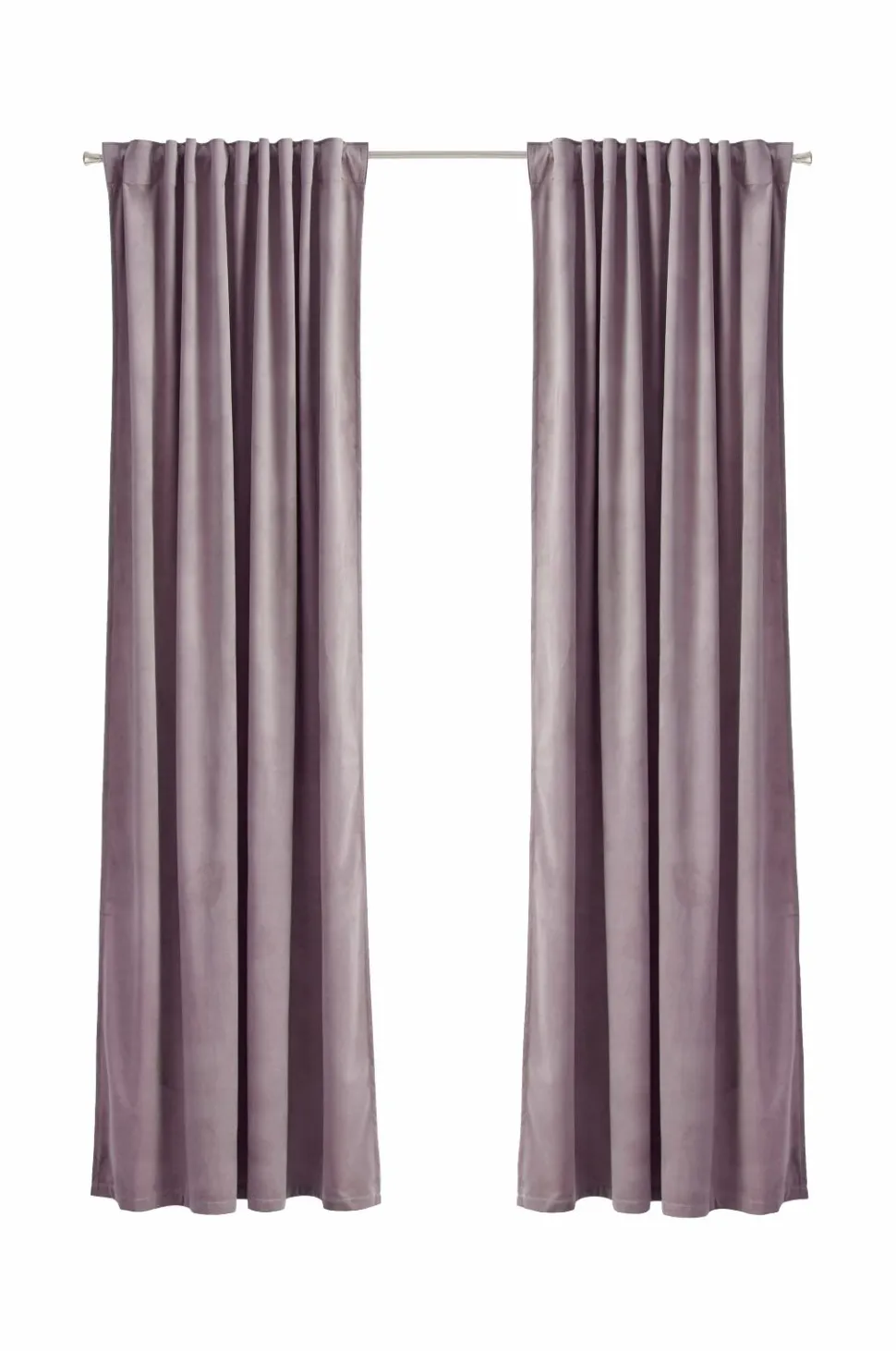 To multibåndslængder i velour med fin glans og blødt fald. Multibåndet gør, at du enten kan hænge gardinerne direkte på en gardinstang gennem de skjulte stropper eller anvende ringe, nålekroge eller fingerkroge. Snore i rynkebåndet gør at du let kan skabe ensartede, flotte læg. Bredde 140 cm. Tre længder: 220, 250 og 300 cm.