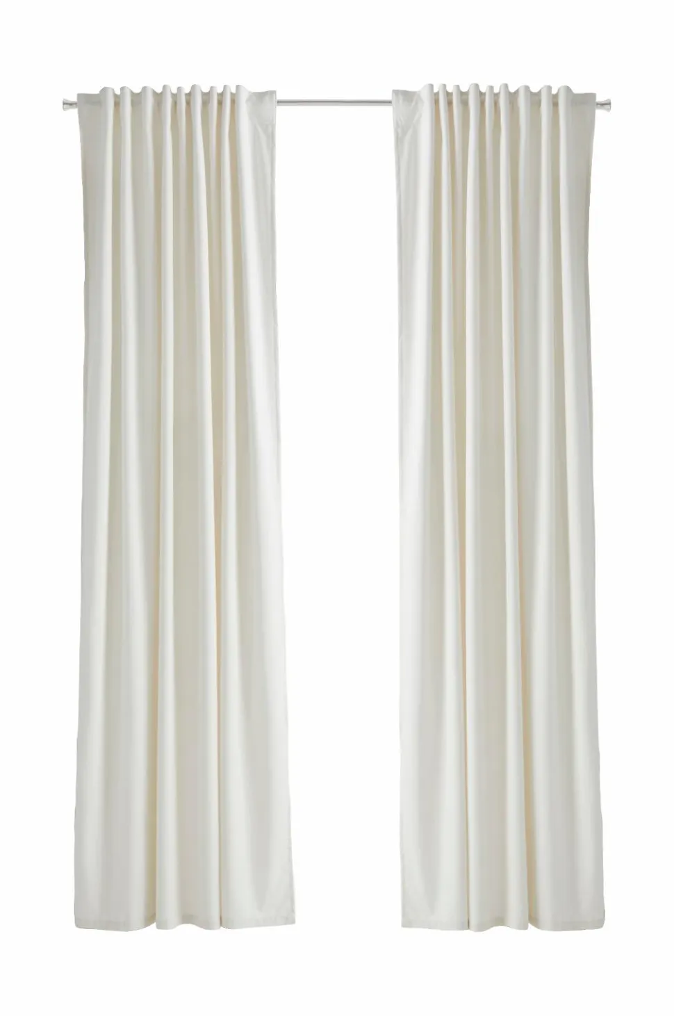 To multibåndslængder i velour med fin glans og blødt fald. Multibåndet gør, at du enten kan hænge gardinerne direkte på en gardinstang gennem de skjulte stropper eller anvende ringe, nålekroge eller fingerkroge. Snore i rynkebåndet gør at du let kan skabe ensartede, flotte læg. Bredde 140 cm. Tre længder: 220, 250 og 300 cm.
