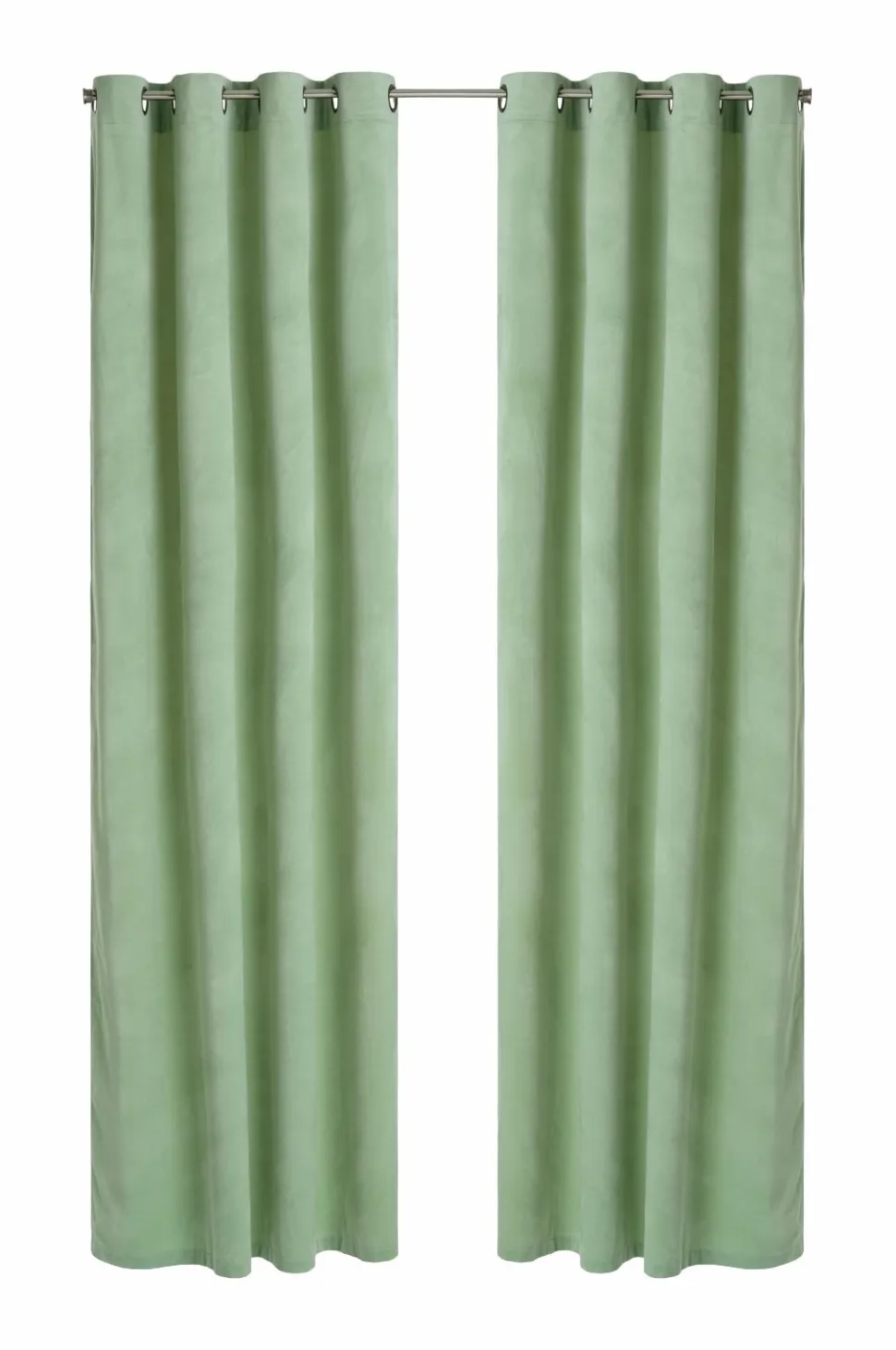 Velourgardiner med fin glans og blødt fald. Sejlringe i antikmessingfarvet metal. Bredde 140 cm. To længder: 220 og 250 cm.