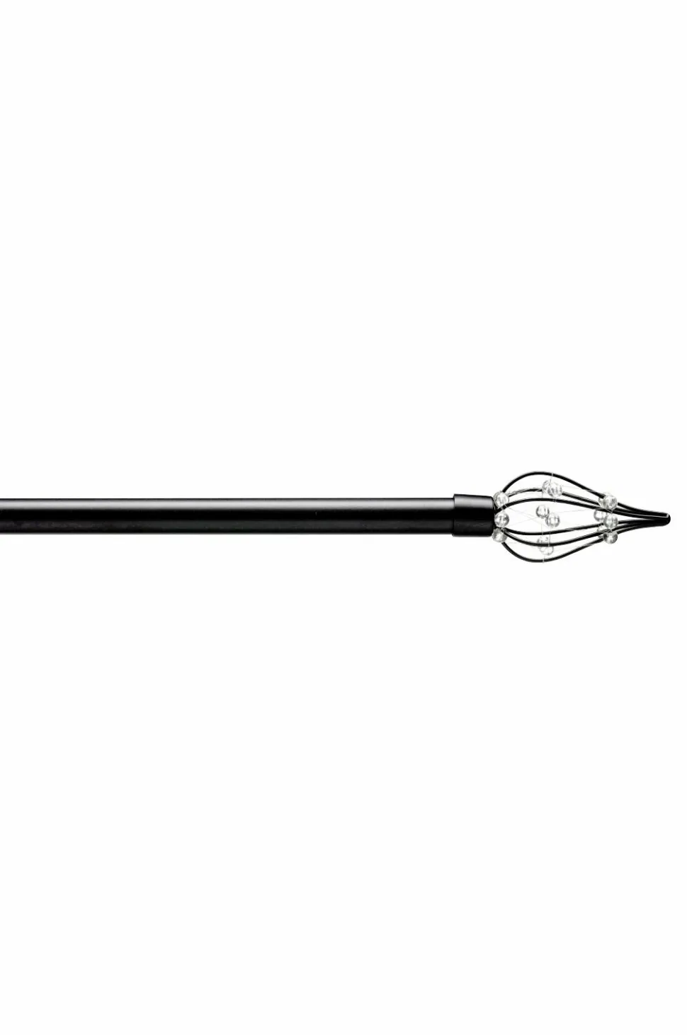 Gardinstangsæt af metal som består af 3 stænger. Justerbar længde 67-190 cm. 2 stk. med diameter 16 mm, 1 stk. med diameter 19 mm. 2 stk. vægbeslag. Vægafstand 7 cm. Endeknopper i metal og perler af plast (11 cm). Skruer og plugs af plast medfølger.