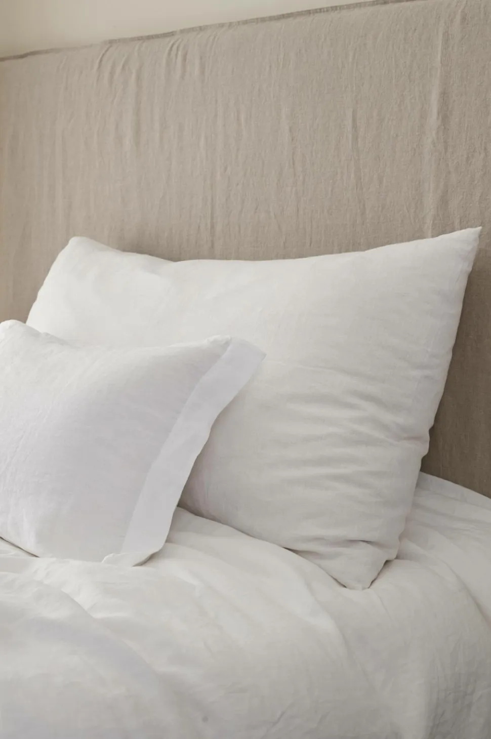 Stort hotelpudebetræk med hovedpude. Pudebetræk er i blød, vasket hørkvalitet, lavet af fransk hør. Puden er middelhøj med fyld af silikoniseret hulfibre (1400 g) og betræk af økologisk bomuldspercale med trådtæthed 200TC.