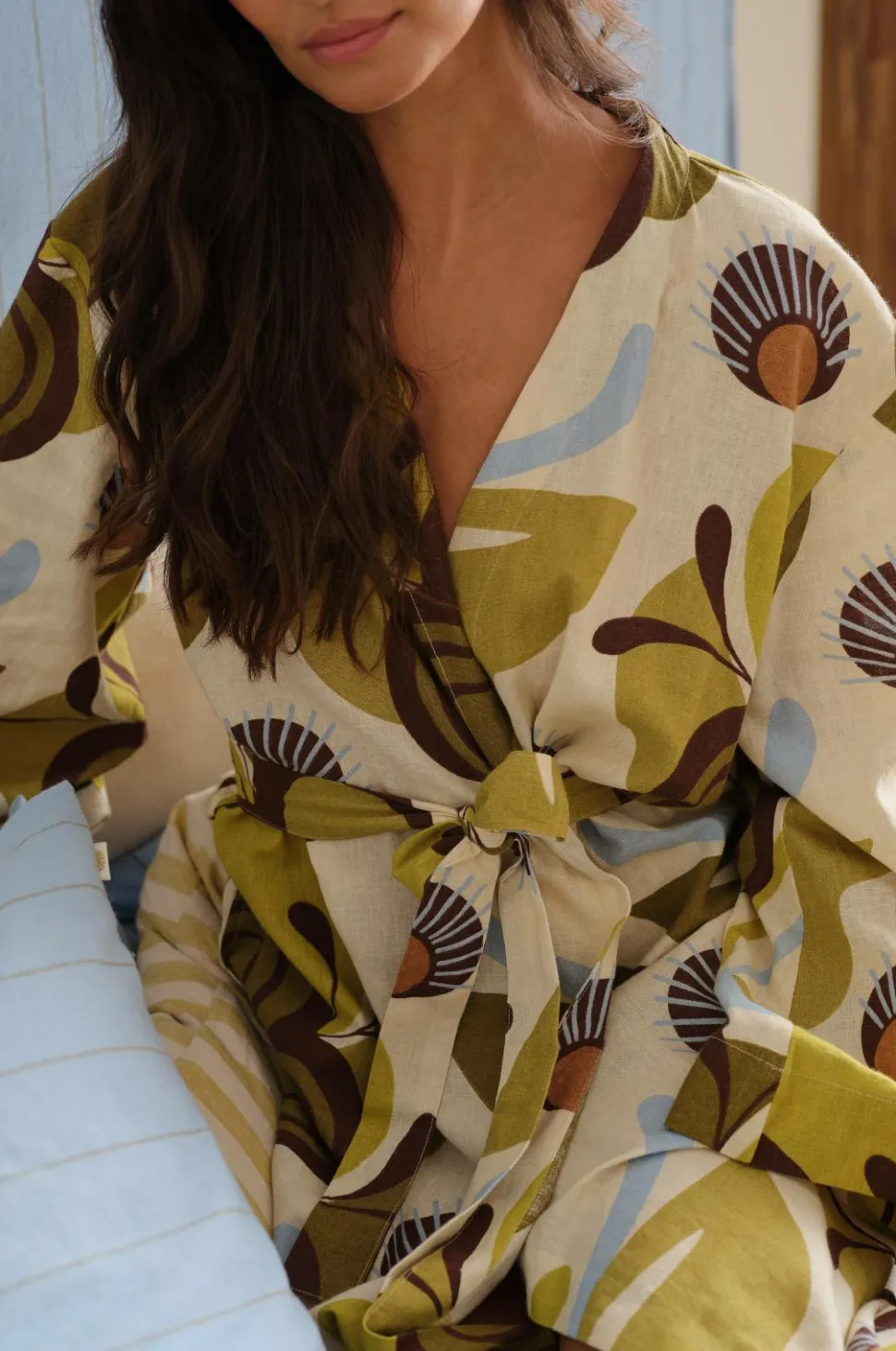 • Kimono i bomuld og hør med blød, vasket afslutning