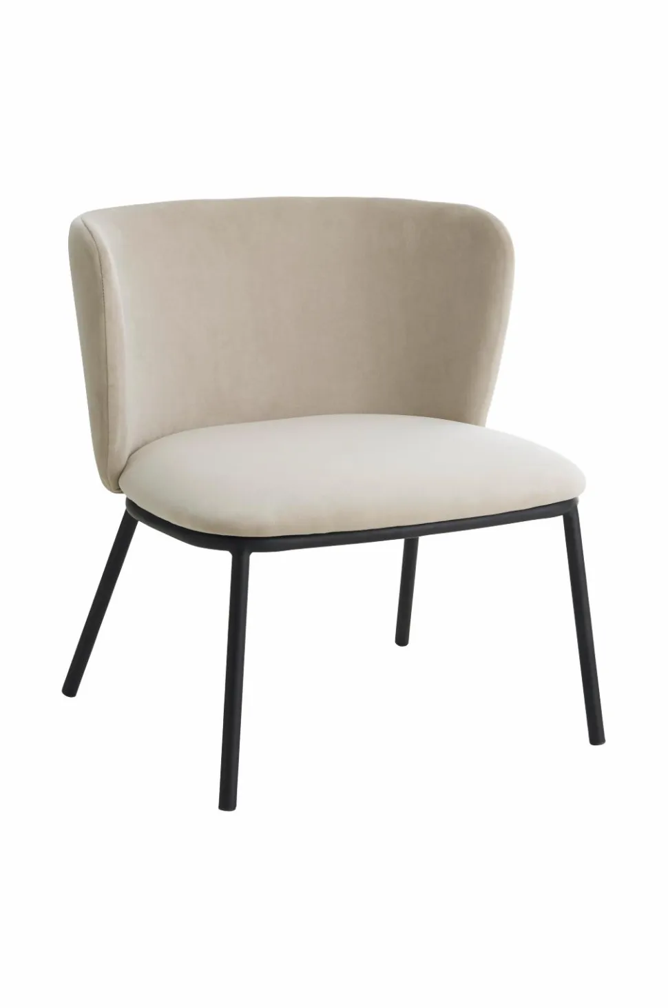 Loungestol i skandinavisk, stilren design med skålformet ryglæn. Betræk med skumfyld. Ben af metal. Lettere samling.