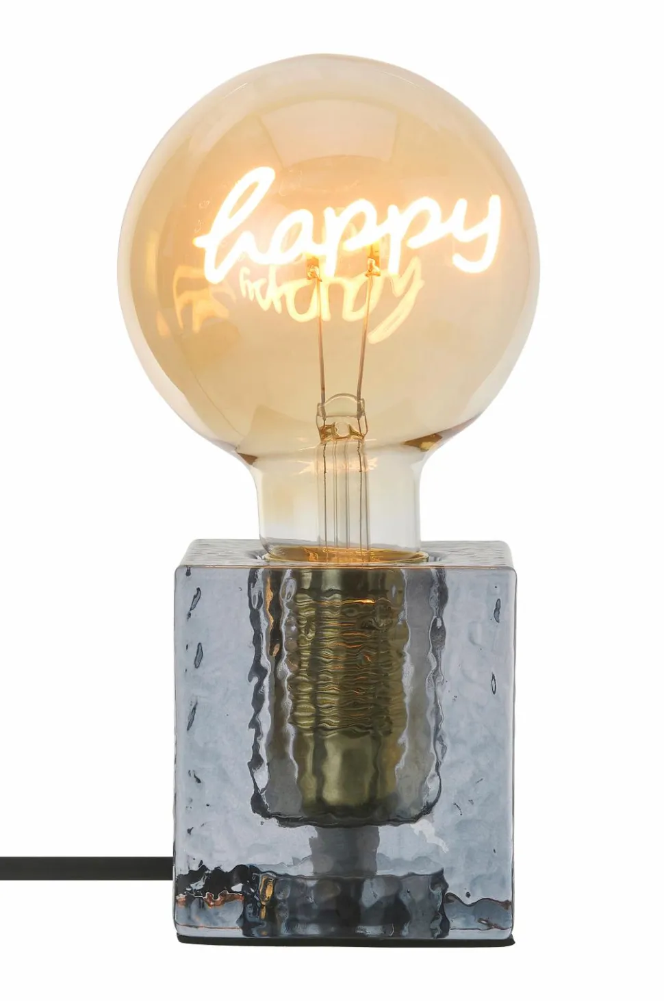 • LED-glødelampe med teksten “HAPPY”