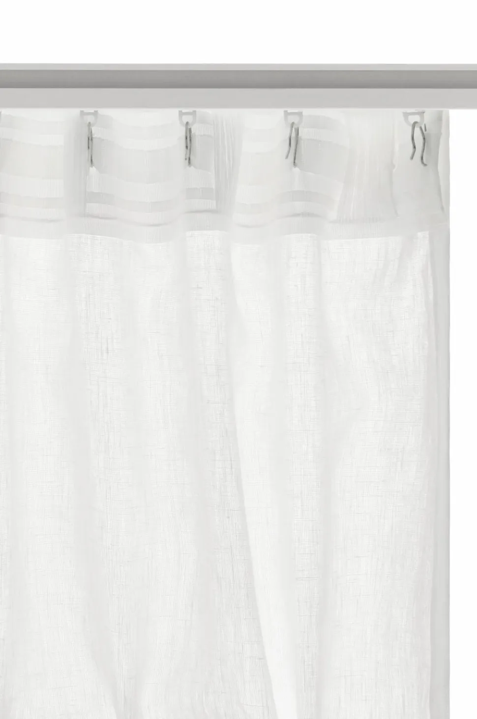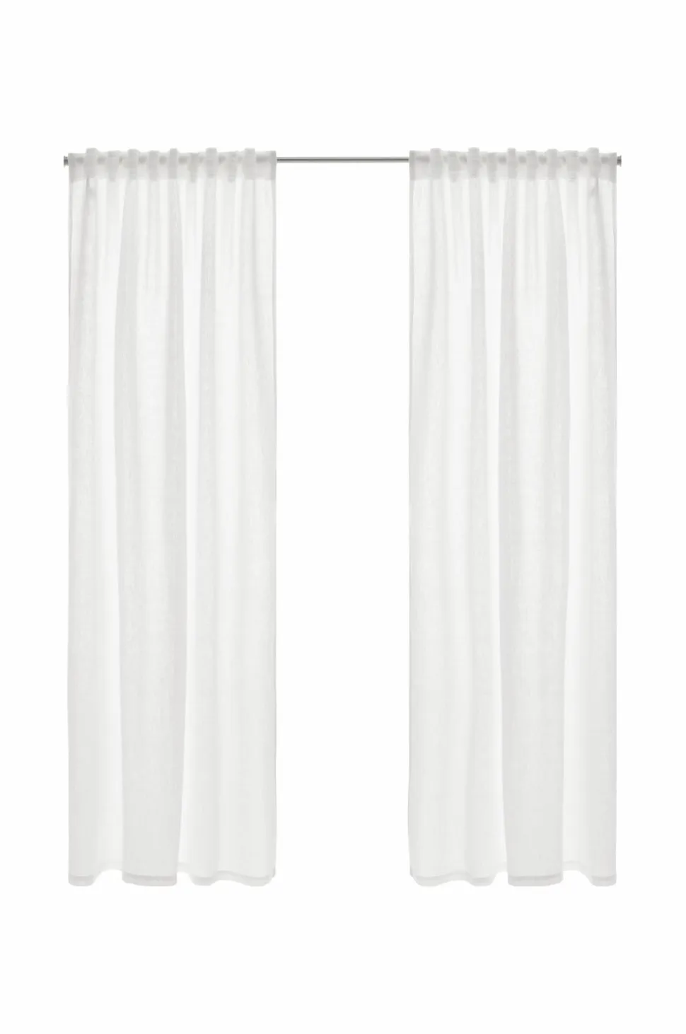 To multibåndsgardiner af hør. Multibåndet gør, at du enten kan hænge gardinerne direkte på en gardinstang gennem de skjulte stropper på bagsiden, eller bruge ringe eller nålekroge (ikke fingerkroge). Snore i rynkebåndet gør at du let kan skabe ensartede, flotte læg. Bredde 135 cm. Tre længder: 220, 250 og 300 cm.