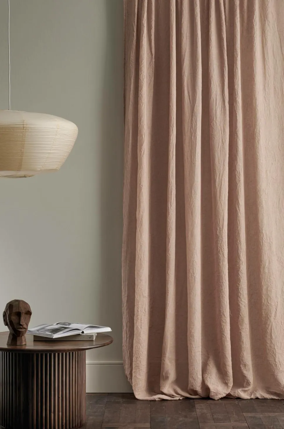 • En Multibåndsgardin i åbent stof, gennemsigtig, let krøllet Hør-voile