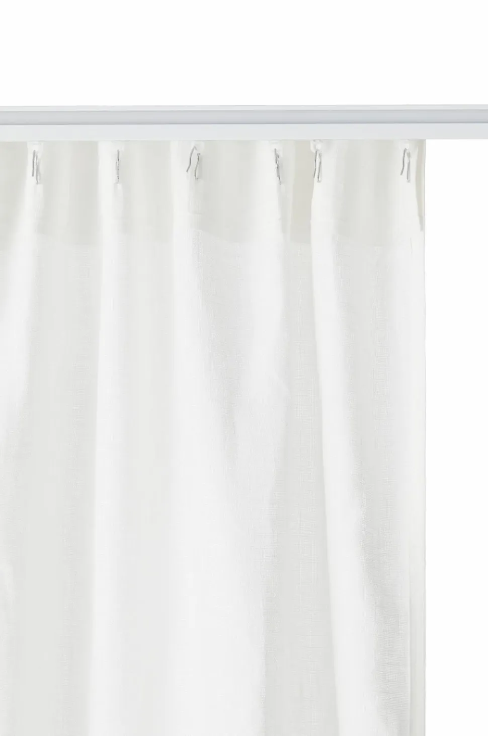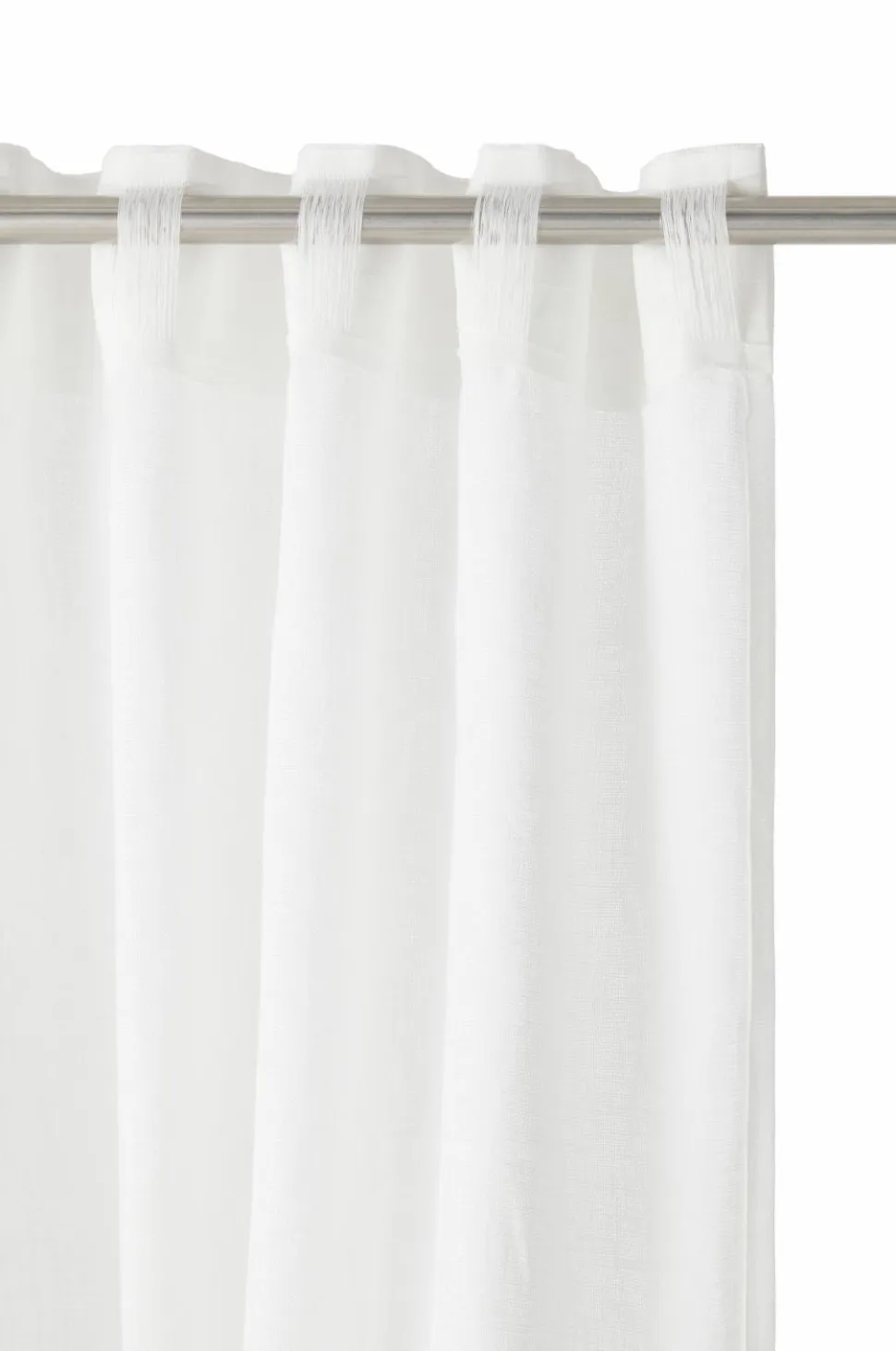 To multibåndsgardiner af hør i vasket, tynd vævet kvalitet. Multibåndet gør, at du enten kan hænge gardinerne direkte på en gardinstang eller anvende ringe og nålekroge (ikke fingerkroge). Snore i rynkebåndet gør at du let kan skabe ensartede, flotte læg. Bredde 145 cm. Findes i flere forskellige længder.