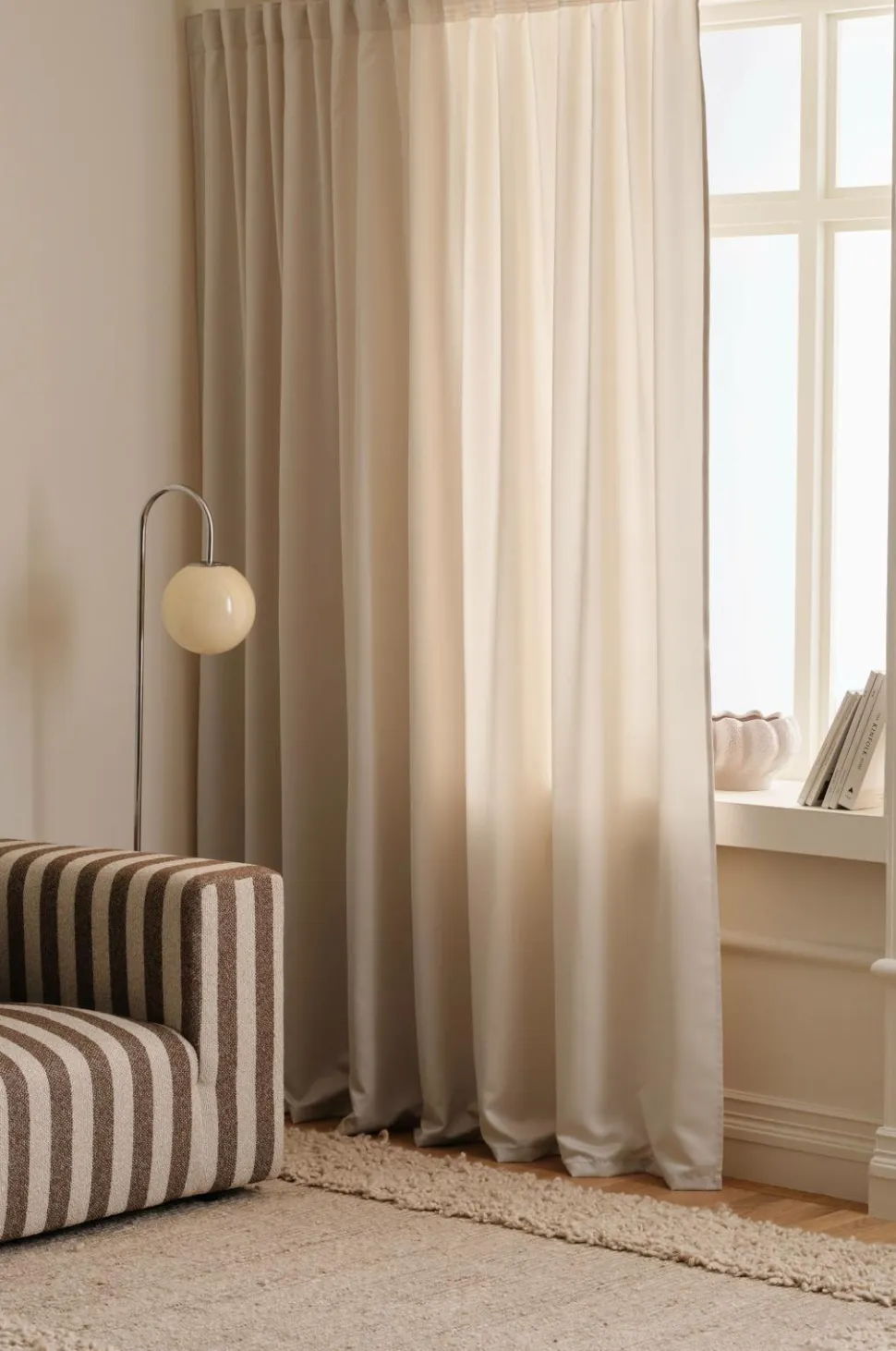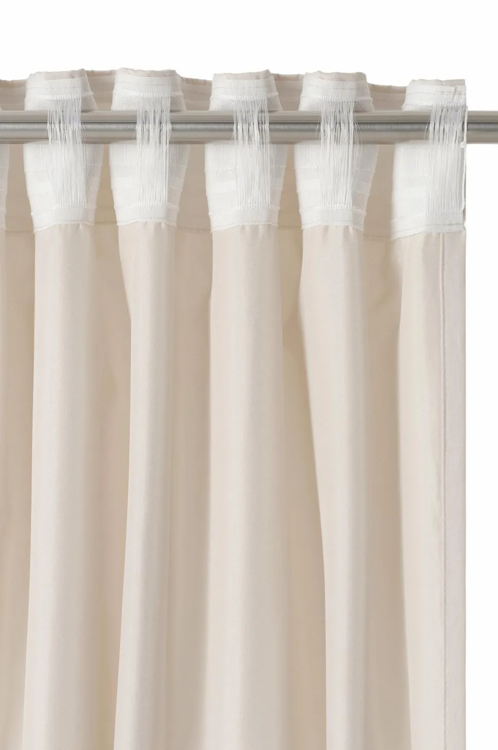 • Multibåndet gør, at du enten kan hænge gardinerne direkte på en gardinstang gennem de skjulte stropper eller anvende ringe, nålekroge eller fingerkroge. Snoren i rynkebåndet gør, at du let kan skabe ensartede, flotte læg.