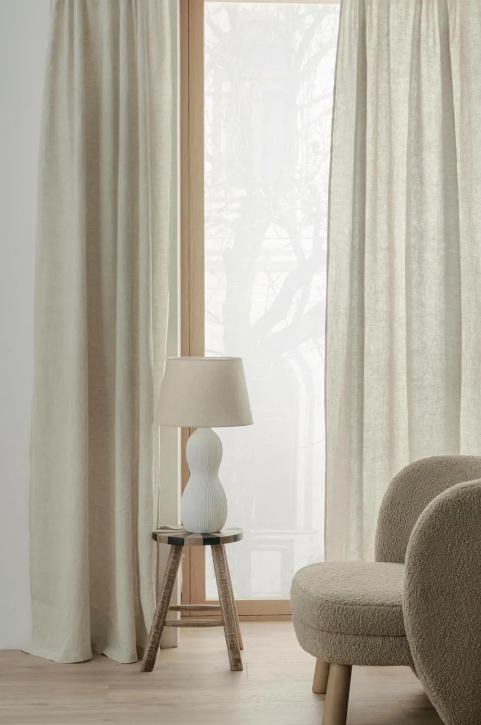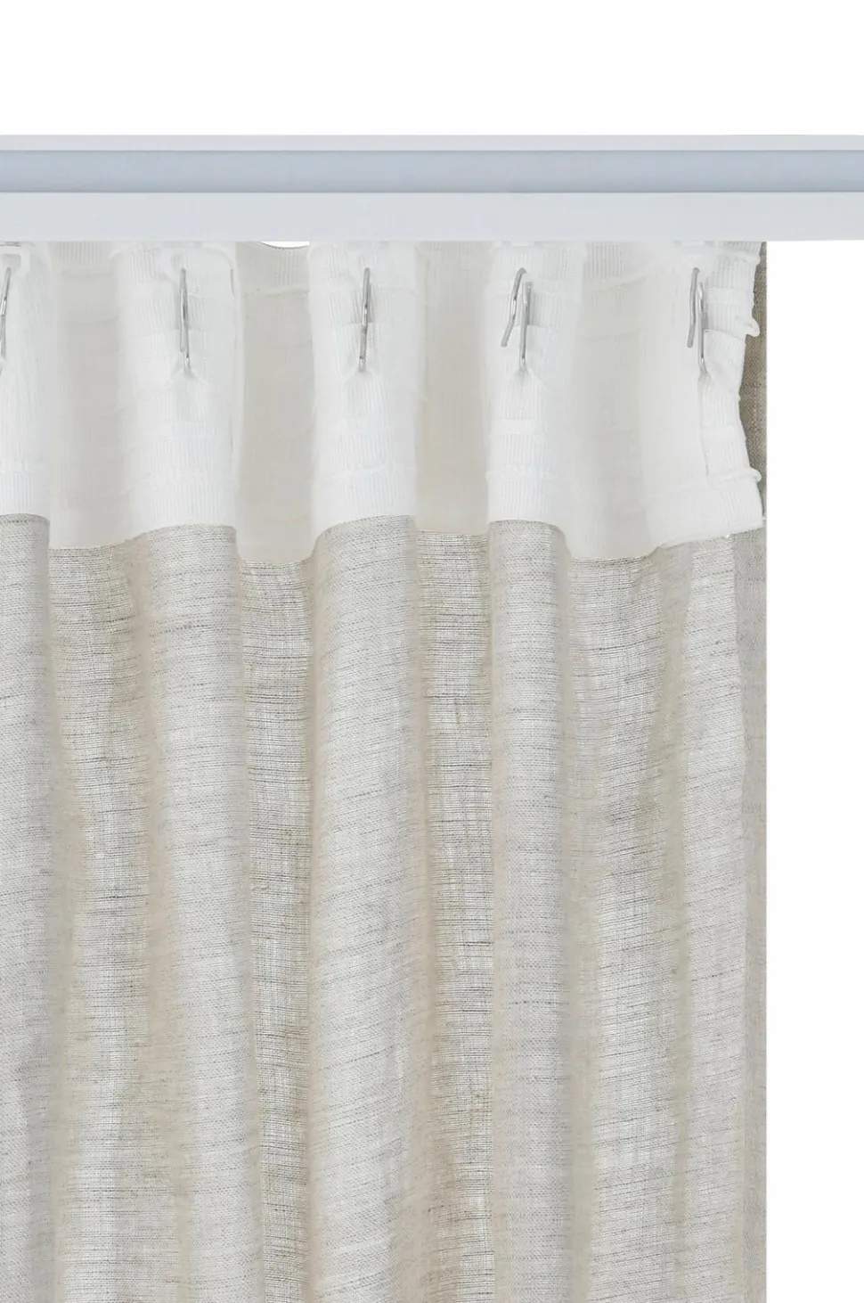 To multibåndslængder i vasket hør med smuk struktur. Multibåndet gør, at du enten kan hænge gardinerne direkte på en gardinstang gennem de skjulte stropper eller anvende ringe, nålekroge eller fingerkroge. Snoren i rynkebåndet gør, at du let kan skabe ensartede, flotte læg. Kan også bruges med rynkebåndskrog. Bredde 135 cm. Findes i flere længder.
