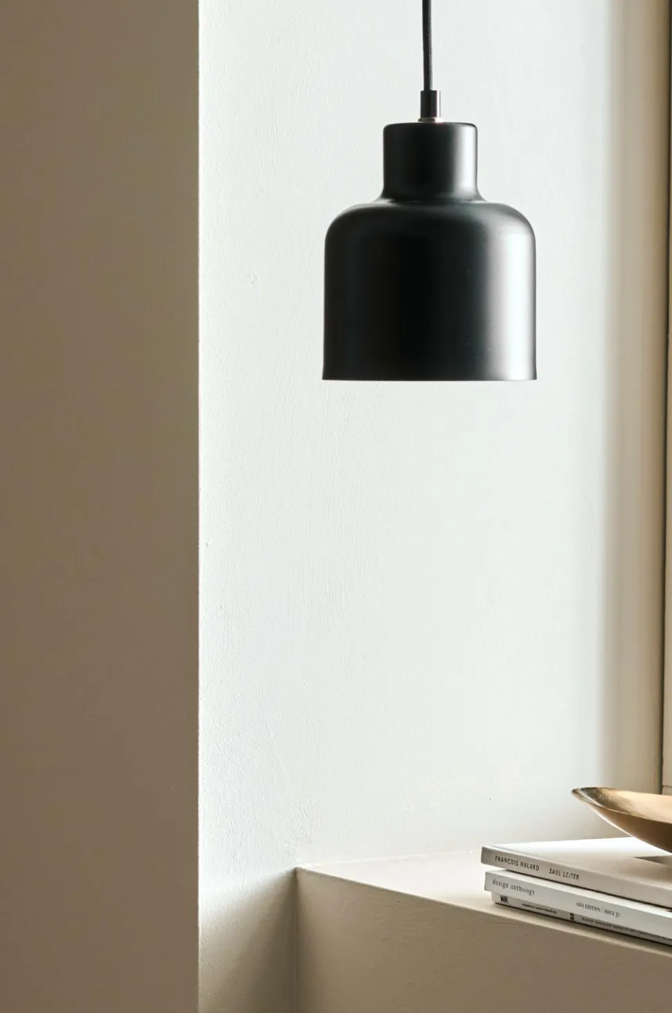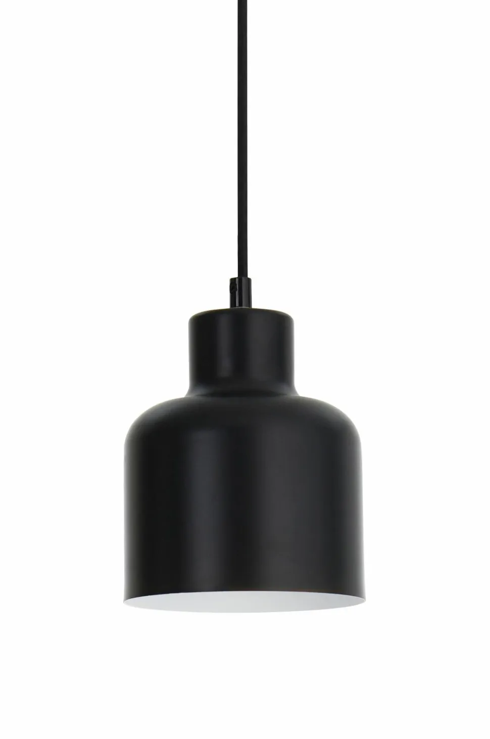 Pendel af metal. Mål på skærm: Diameter 14 cm, højde 16 cm. Stofledning med vægstik. Pære medfølger ikke.