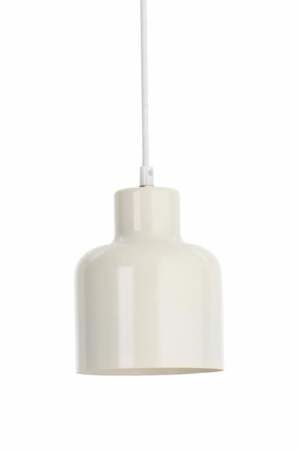Pendel af metal. Mål på skærm: Diameter 14 cm, højde 16 cm. Stofledning med vægstik. Pære medfølger ikke.