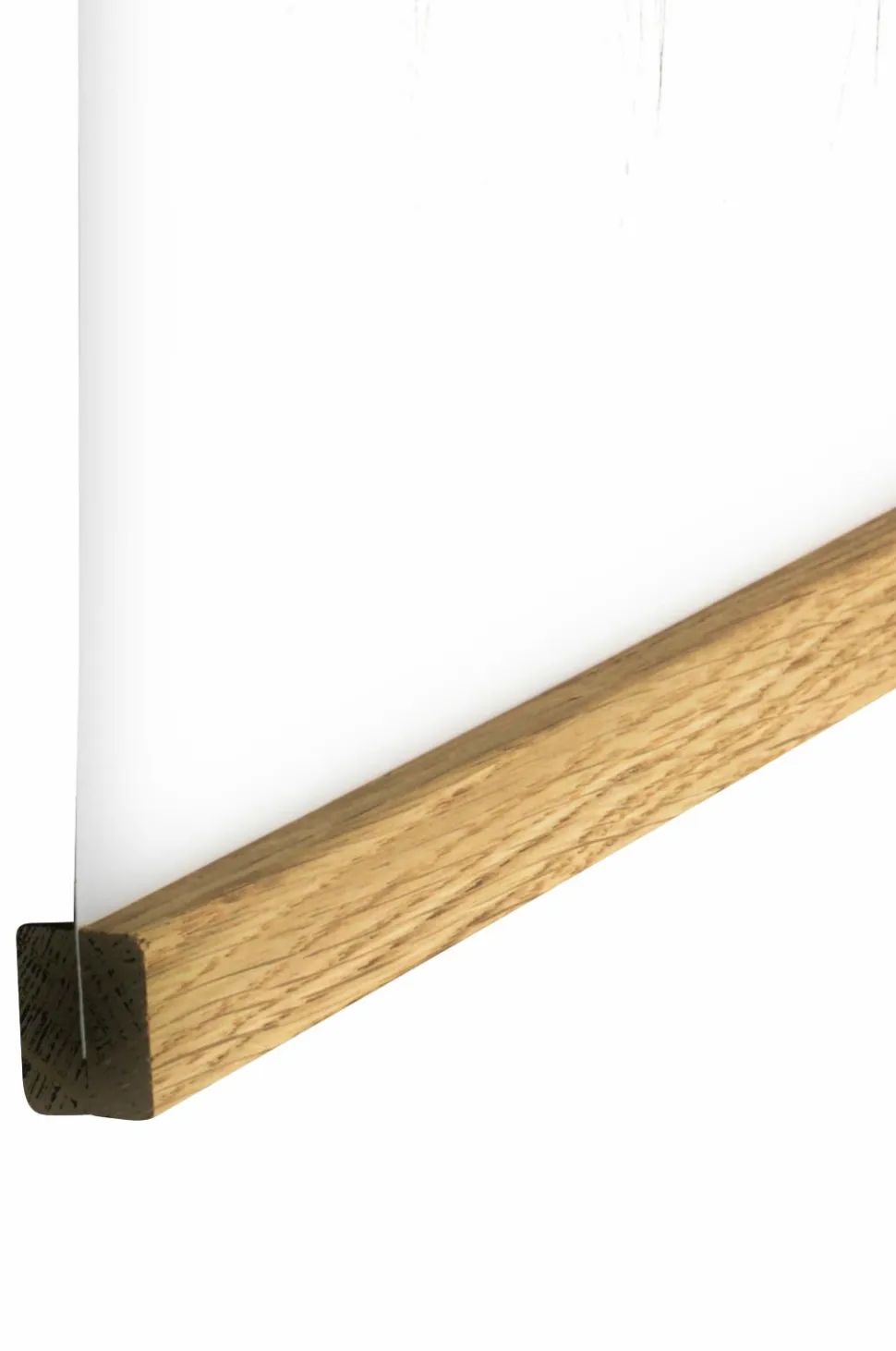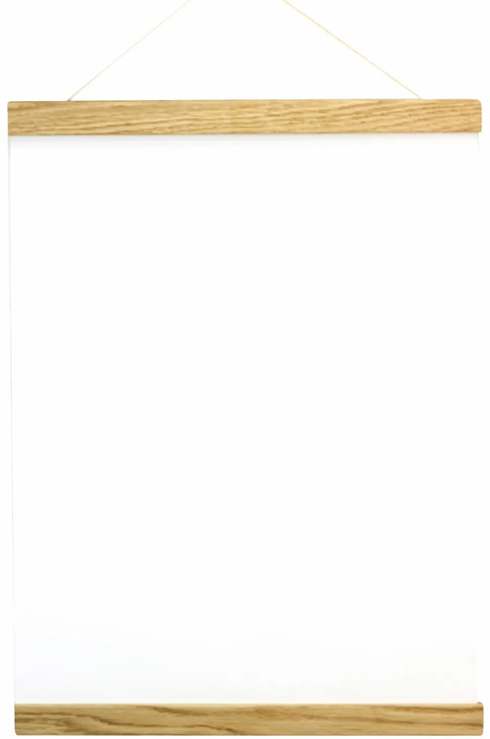 Plakatophæng med kraftige magneter. Klem plakaten, fotoet m.m. fast foroven og forneden i de dobbelte skinner og hæng op. leveres med fast snor. Leveres pakket i krympefilm. Findes i forskellige farver, såsom Eg (træsort eg), Valnød (træsort ask), Hvid og Sort (træsort fyrretræ). Passer till plakater som er 30 cm, 50 cm eller 70 cm brede, afhængigt af hvilken størrelse du vælger på rammen.