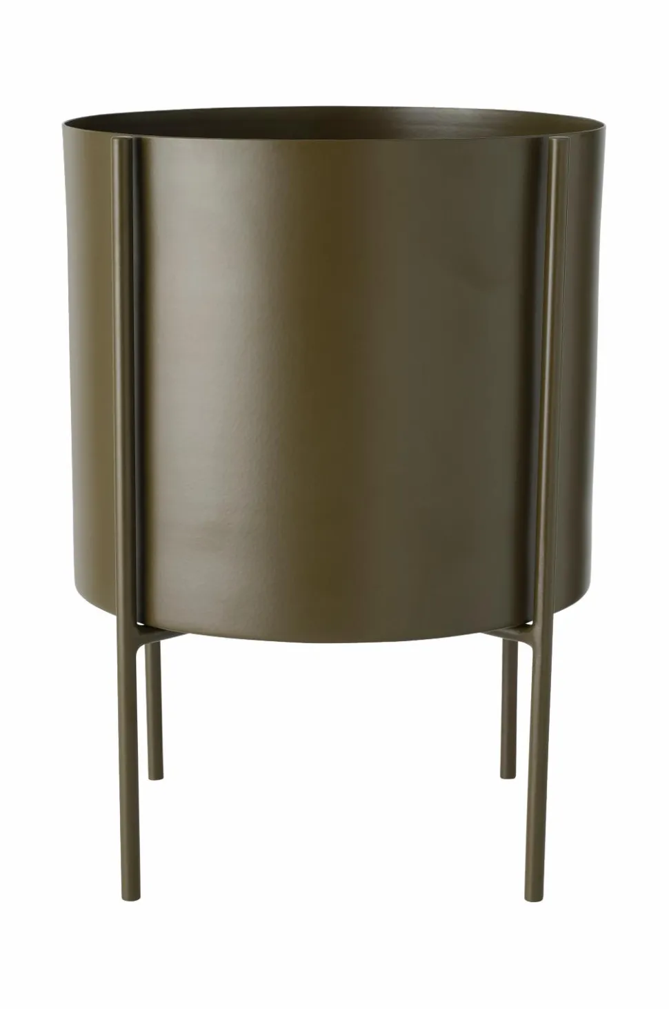 Jernkrukke med stativ på 4 ben. Stativet er vendbart, og gryden kan placeres på begge sider af stativet i forskellige højder. Mål på gryden: Højde 22 cm, Ø 25 cm. Placeret i stativet er den højeste højde 45 cm og den laveste højde 35 cm.