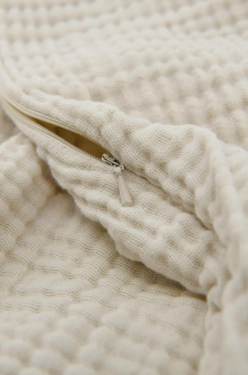 Pudebetræk af økologisk bomuldsmuslin i 4 lag. Lynlås. Leveres rullet.