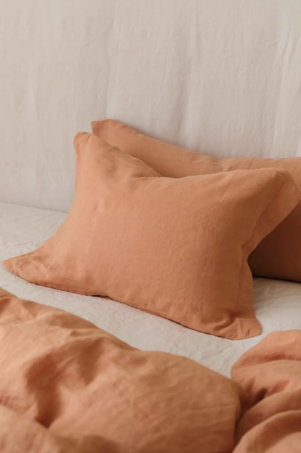 Pudebetræk i blød og sval vasket kvalitet af fransk hør. Str. 50×60 cm + 5 cm vinge på de korte side. Vægt 165 g/m2.