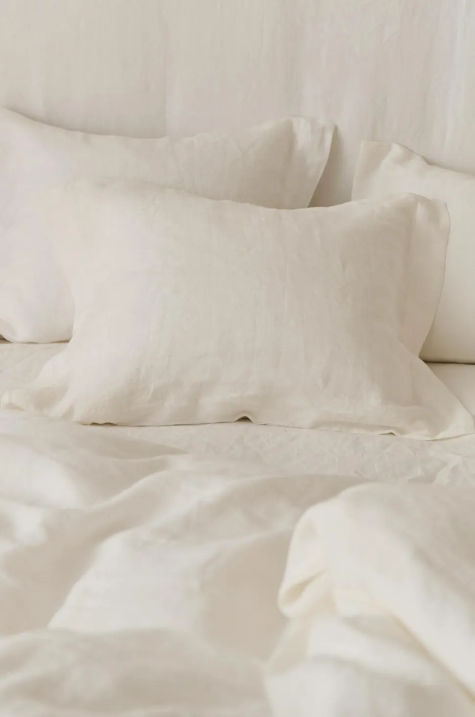 Pudebetræk i blød og sval vasket kvalitet af fransk hør. Str. 50×60 cm + 5 cm vinge på de korte side. Vægt 165 g/m2.